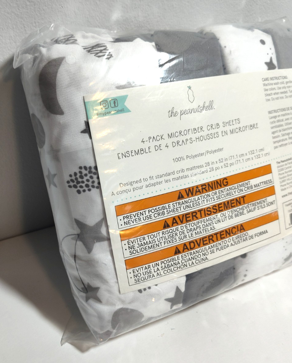 The Peanutshell 4 Pack Microfiber Crib Sheets Gray White Black Moon and Stars