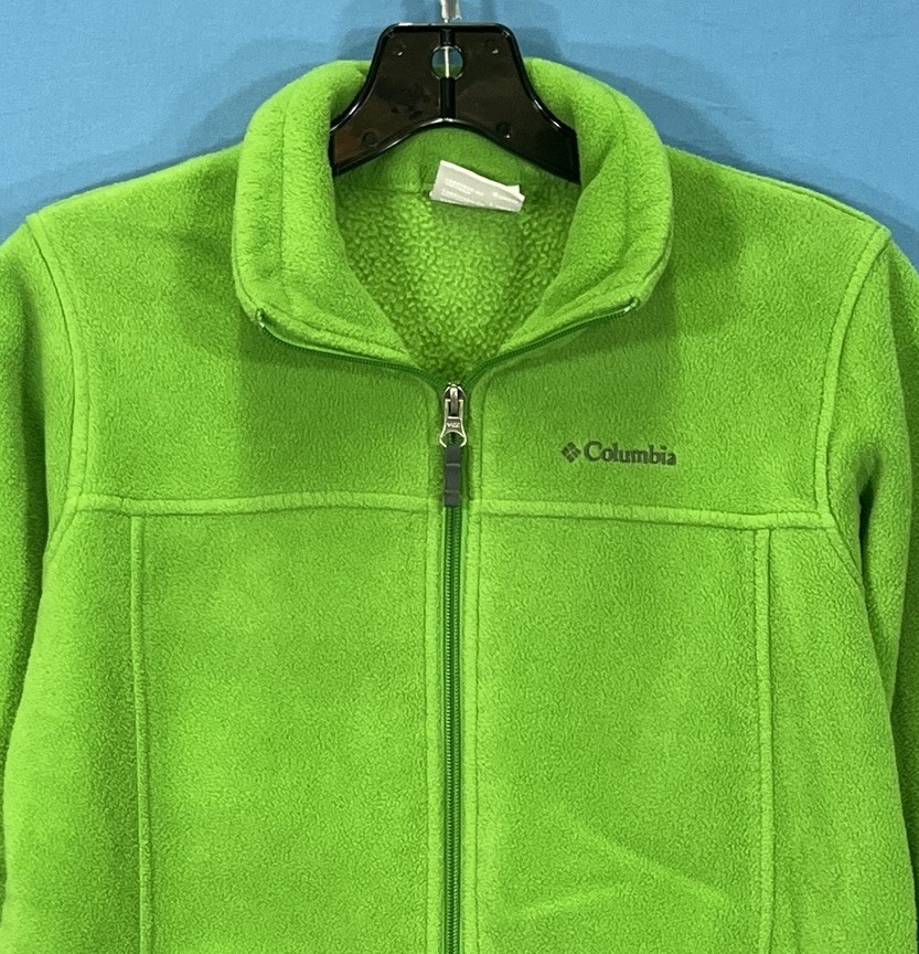 как выглядит COLUMBIA Boys STEENS MOUNTAIN II Green FLEECE Pockets ZIP-UP Jacket L 14-16 фото