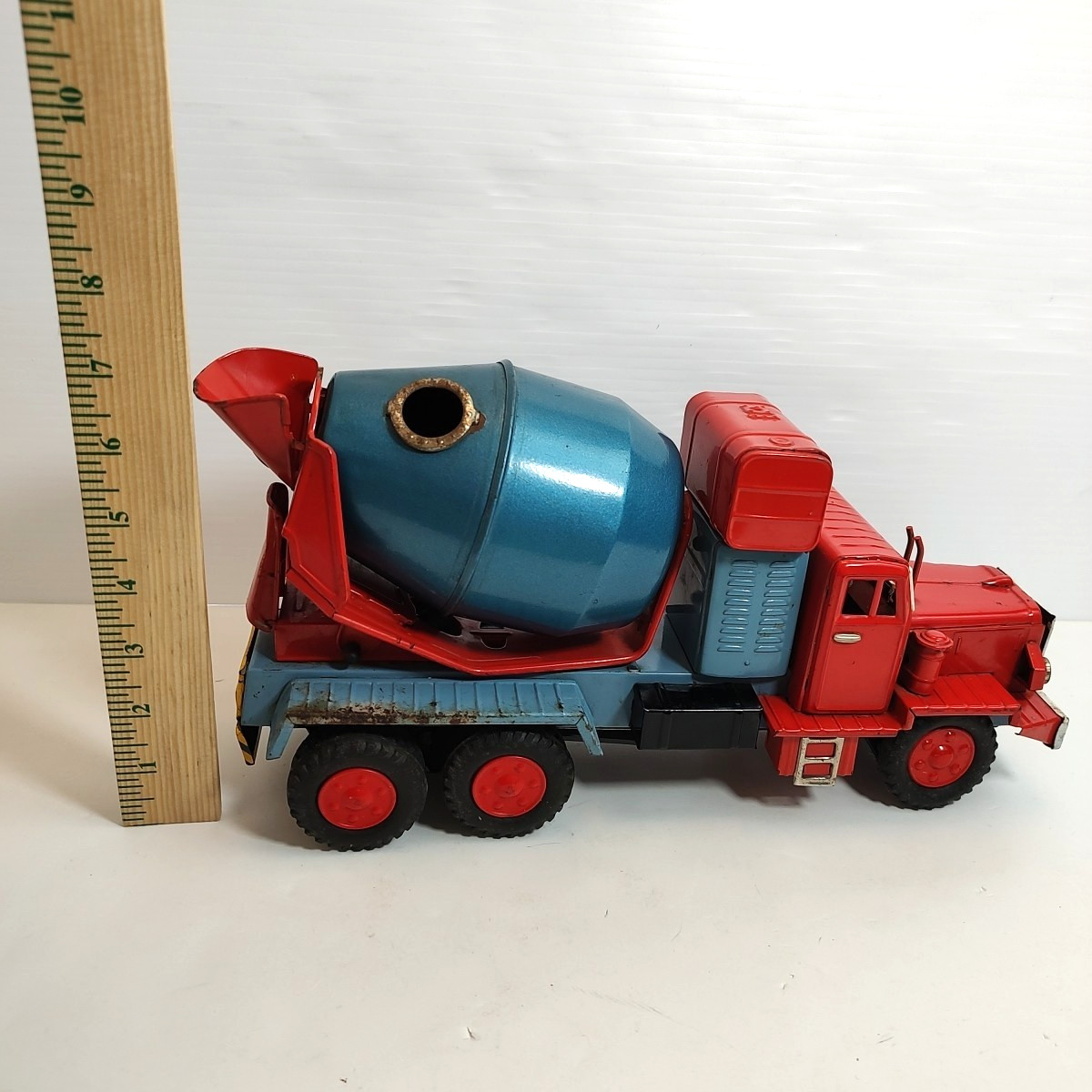 как выглядит Vintage 1950s Large Cragstan Tin Cement Mixer Truck - Made in Japan фото