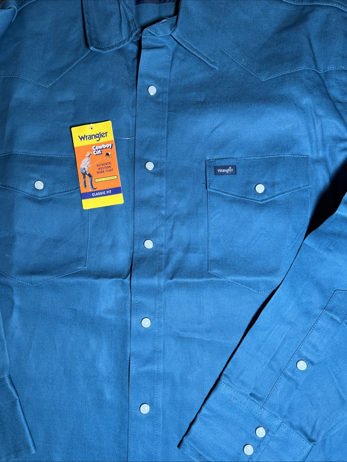 как выглядит Wrangler Cowboy Cut Pearl Snap Western Collared Dress Shirt Teal XL NWT фото