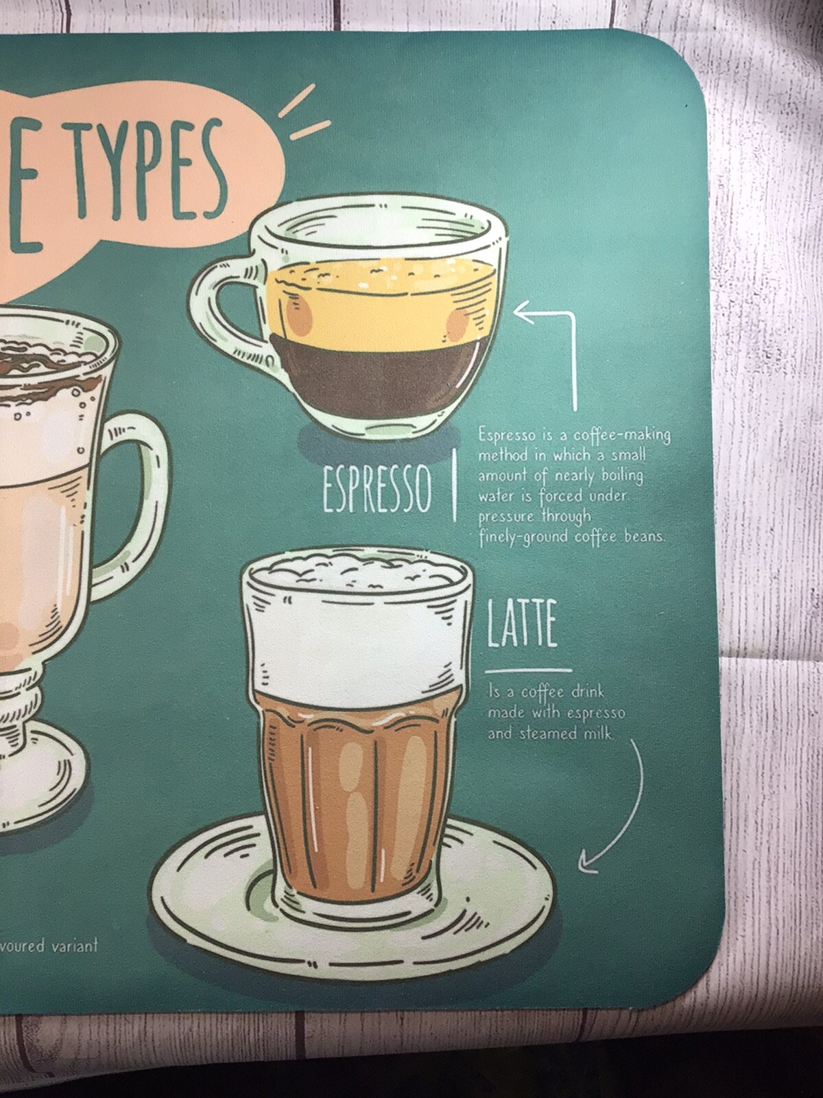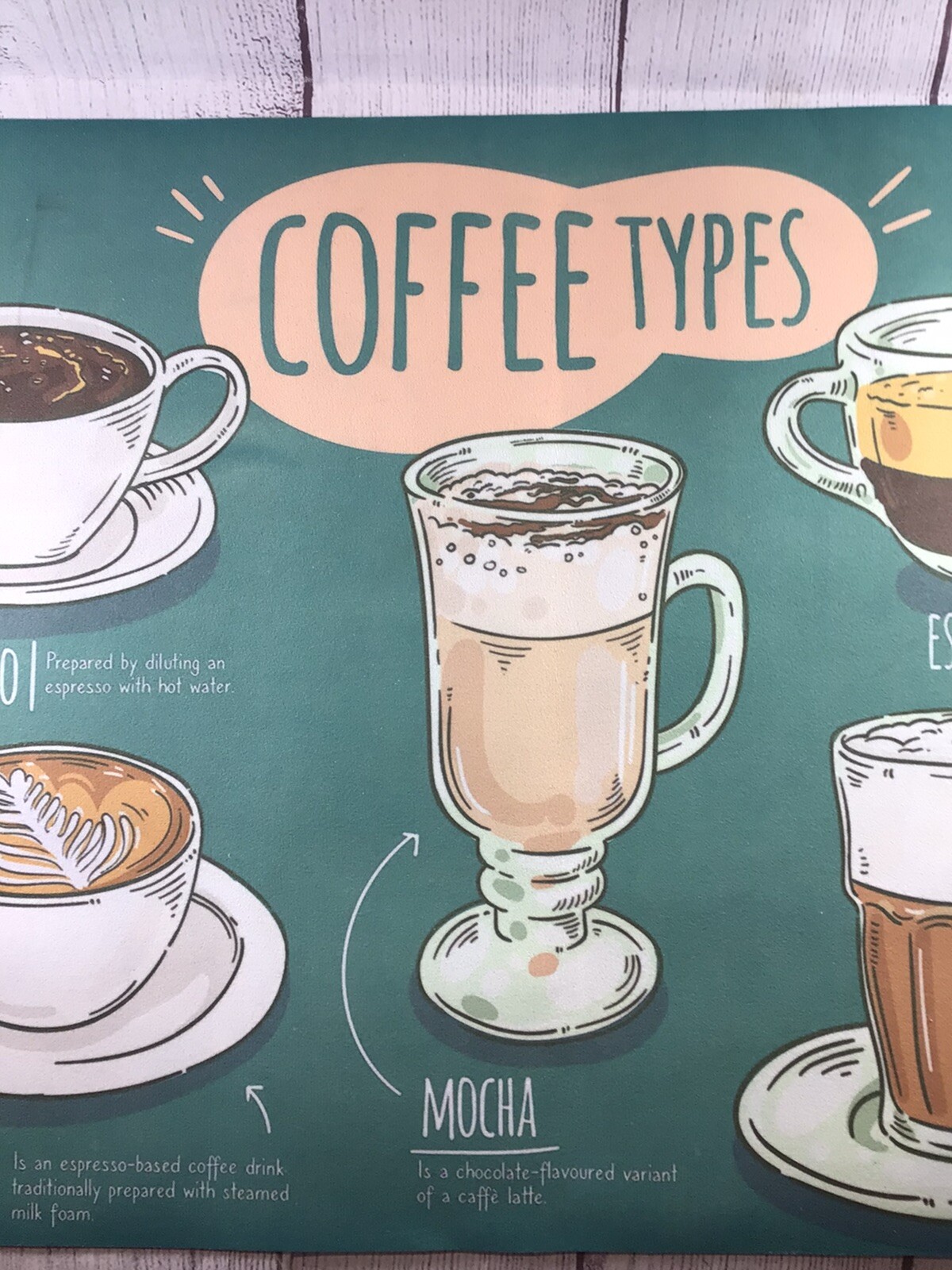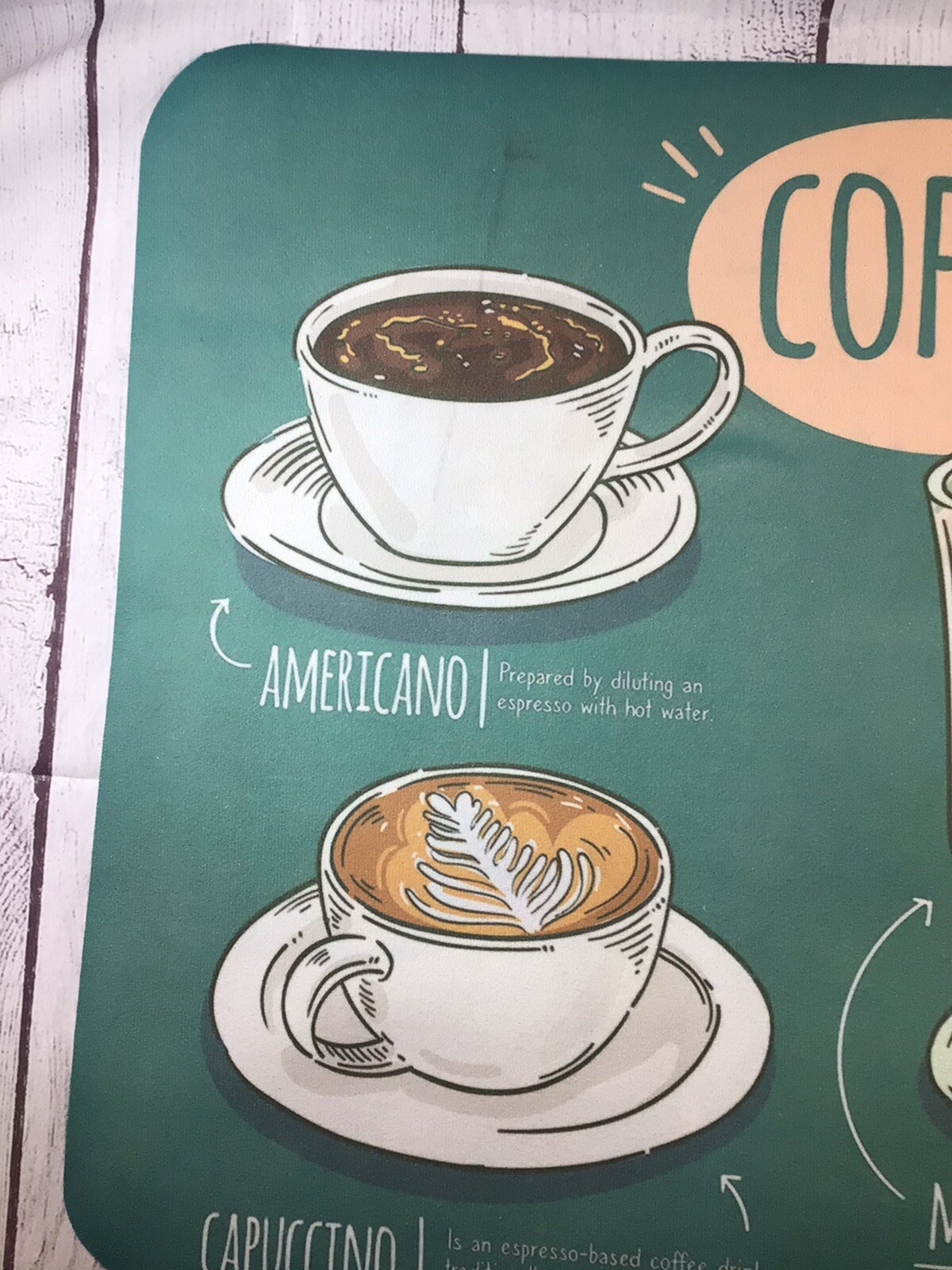 как выглядит Coffe Types Green Large Computer Desk Mat Table Keyboard Mouse Pad фото