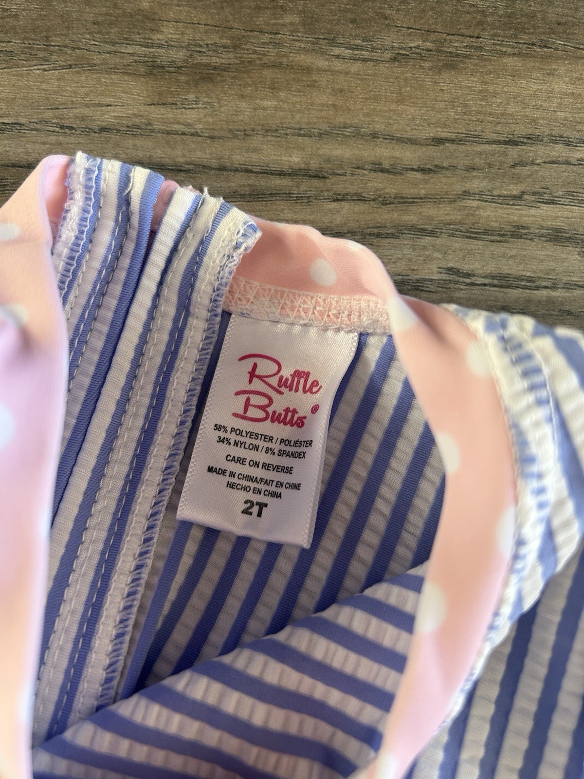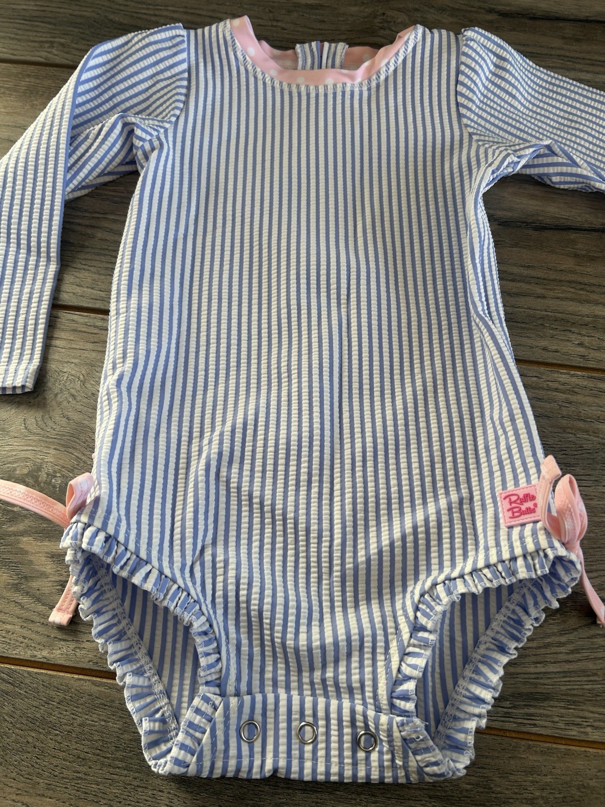 как выглядит Ruffle Butts 2T Blue Pink Long Sleeve One Piece Rash Guard Swimsuit Swim EUC фото