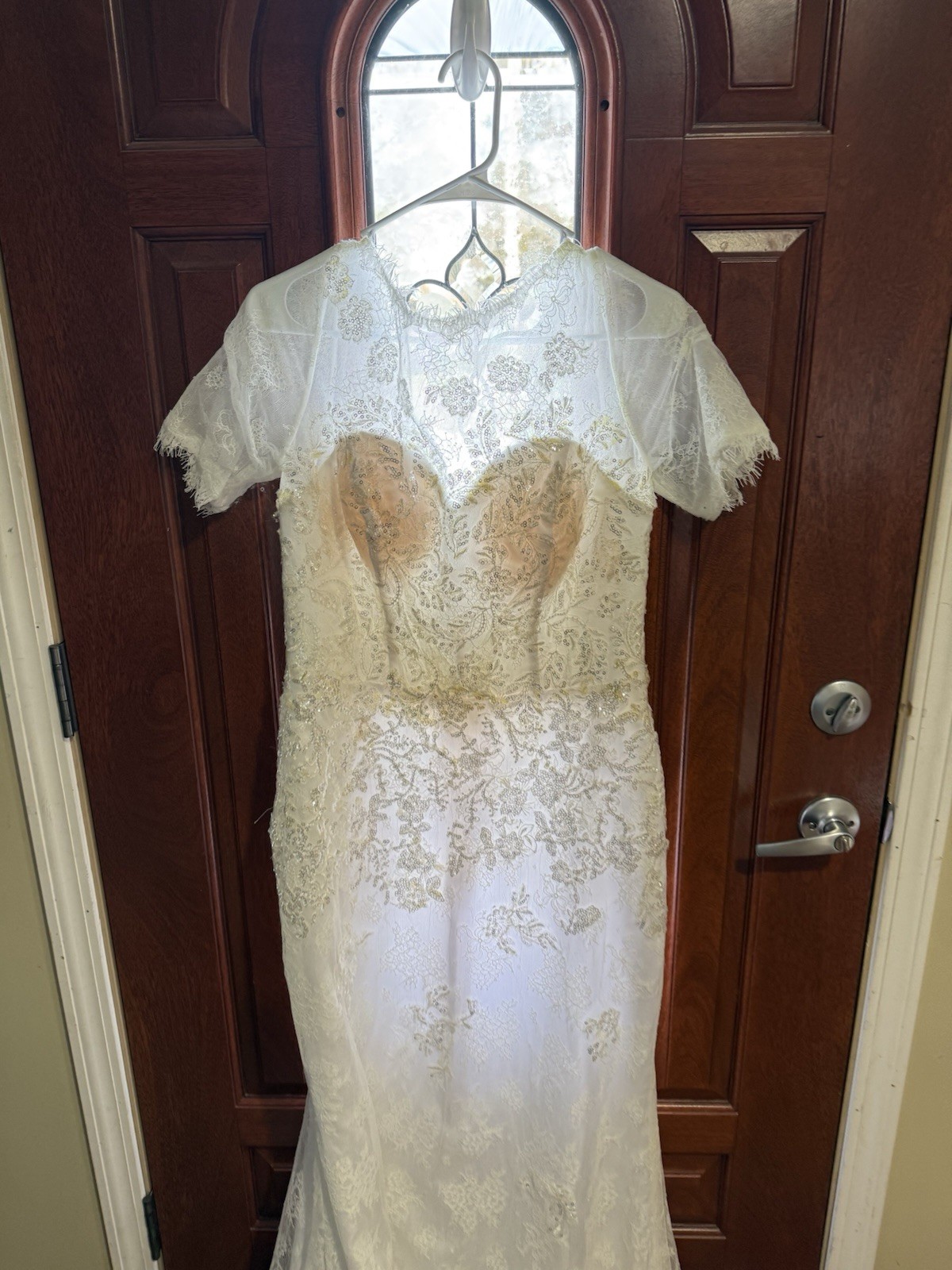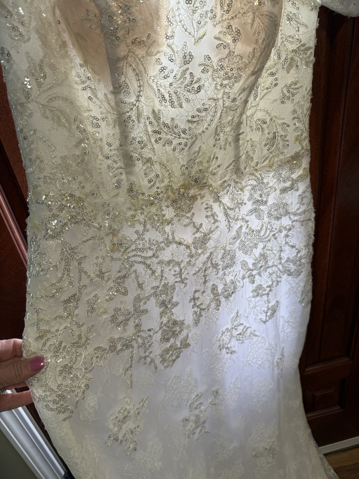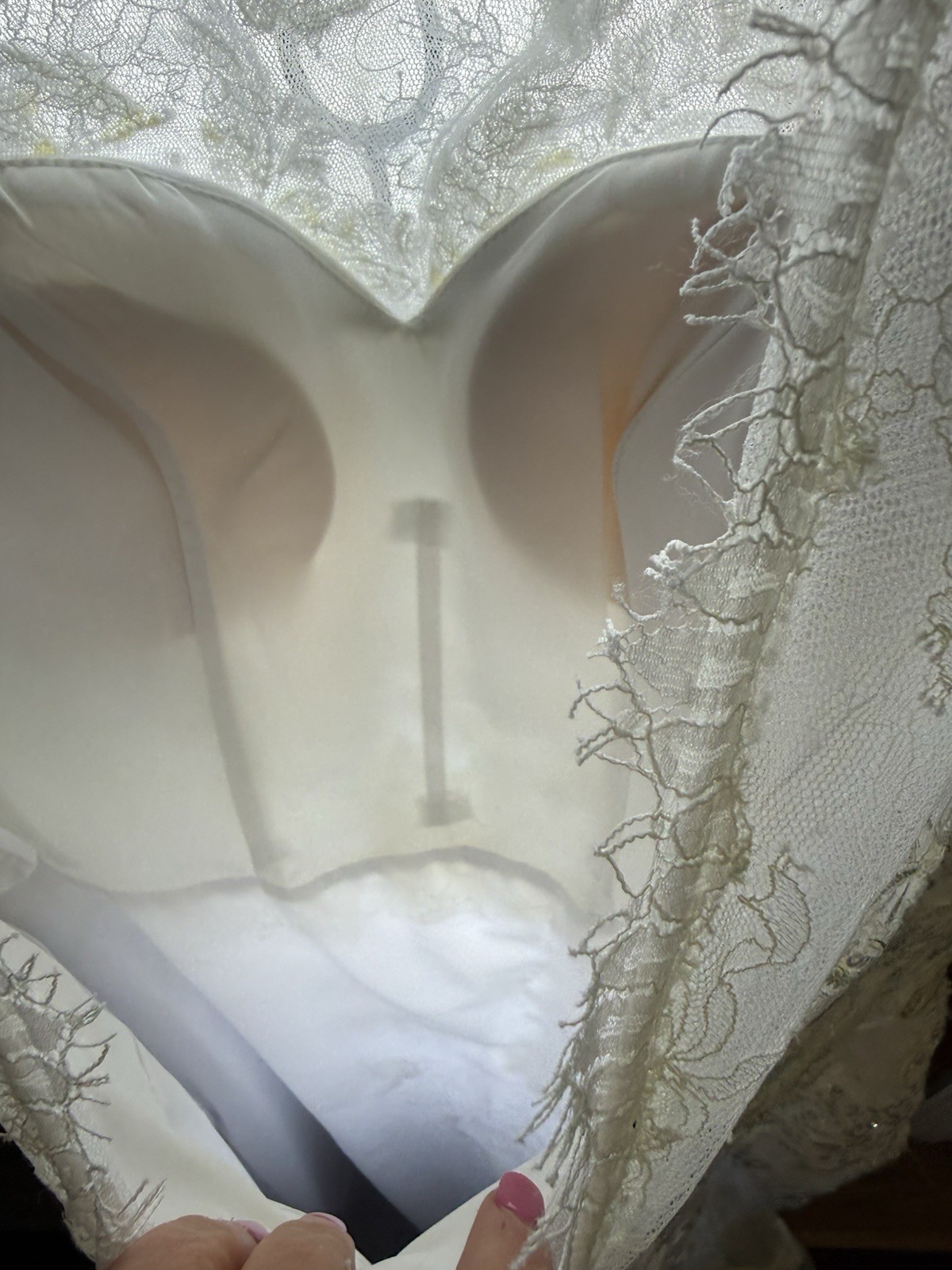 как выглядит Vintage 90s Beaded White Lace Wedding Bridal Dress-30 Waist фото