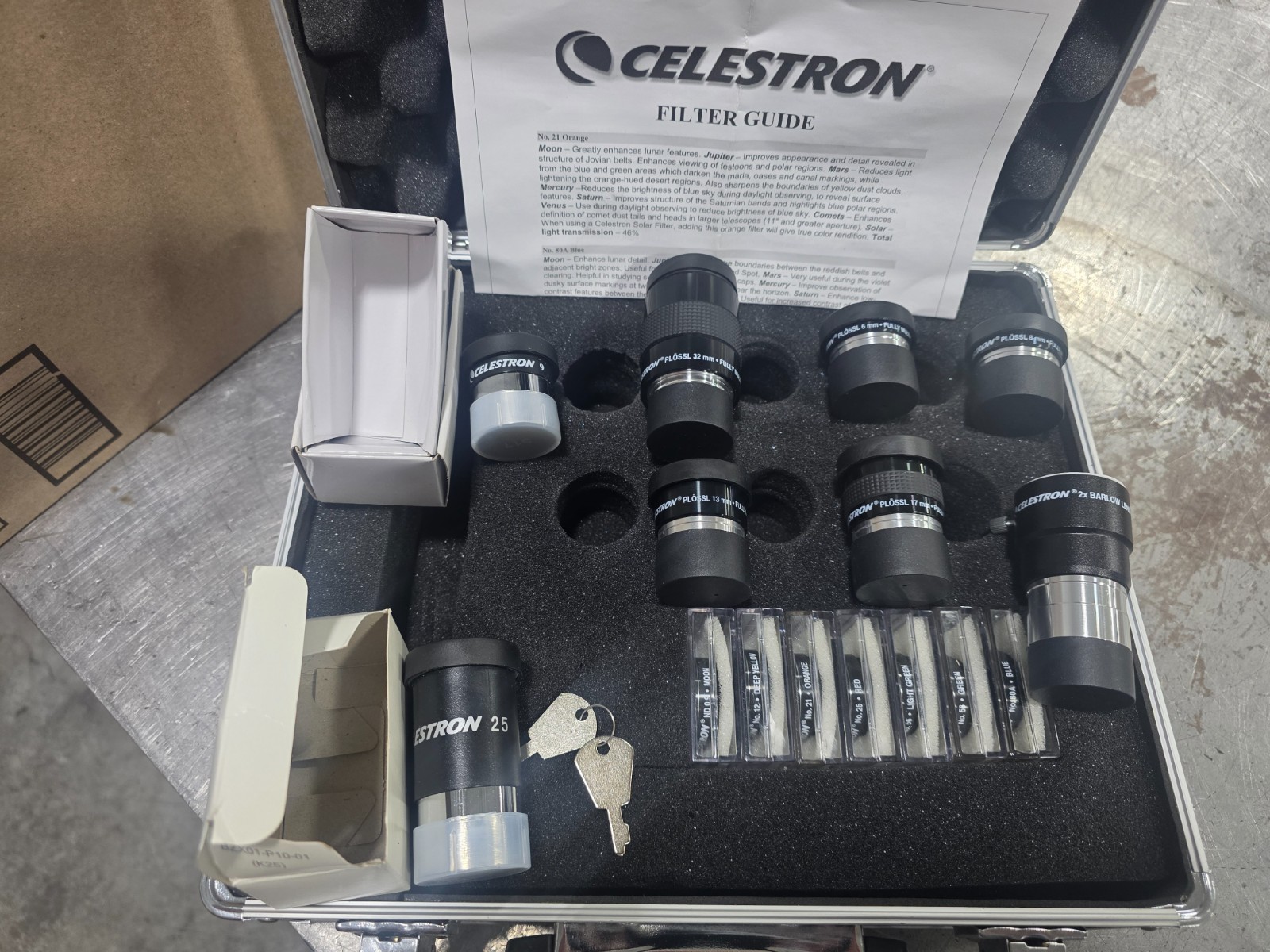 как выглядит Celestron 1.25" Telescope Eyepiece Filter Kit Plossl Barlow BONUS 9 and 25mm фото