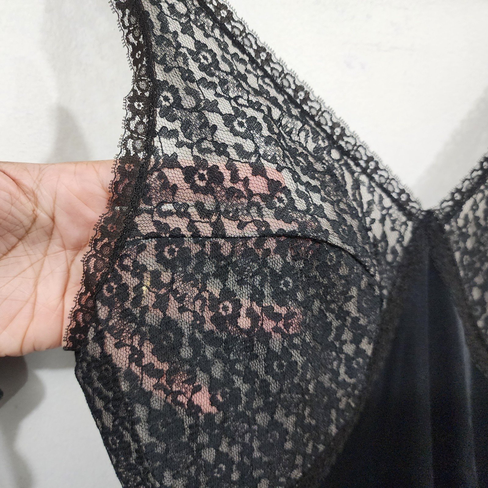 Vintage Sears the Doesn't Slip Lingerie Full Dress Black Nylon Lace Womens 40