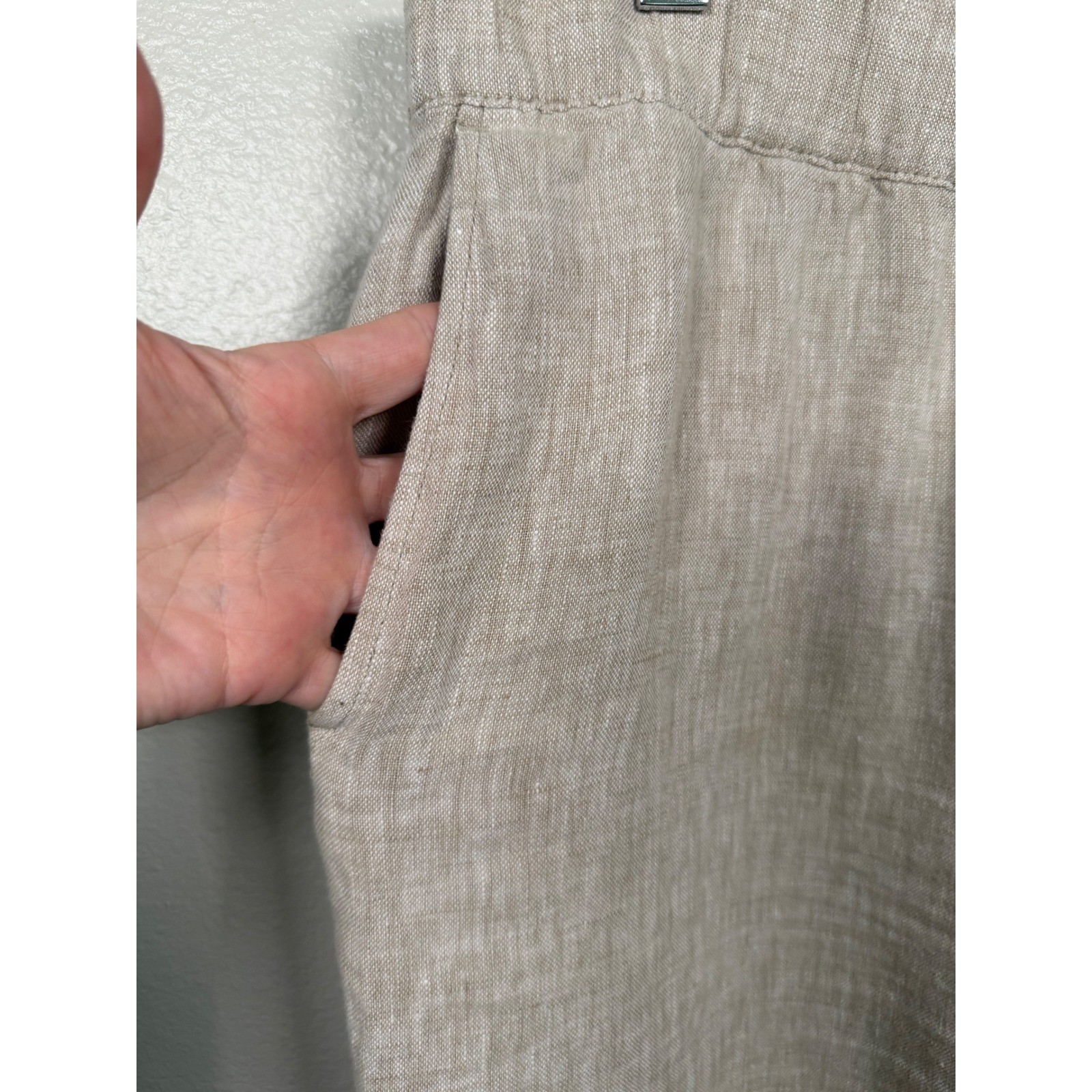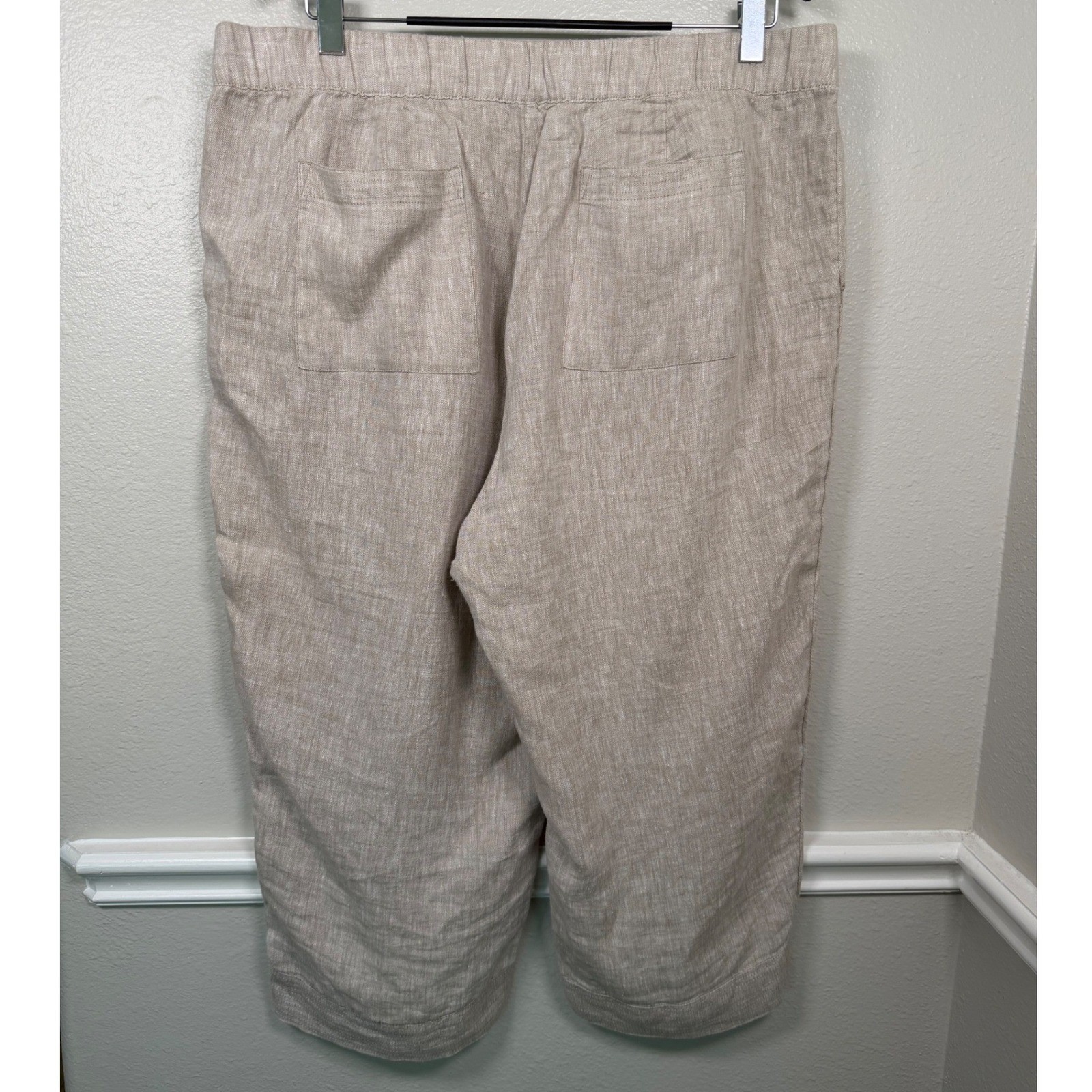 как выглядит J. Jill Pure Jill 100 Linen Cropped Capri Pull On Pants Womens 2X Beige Tan фото