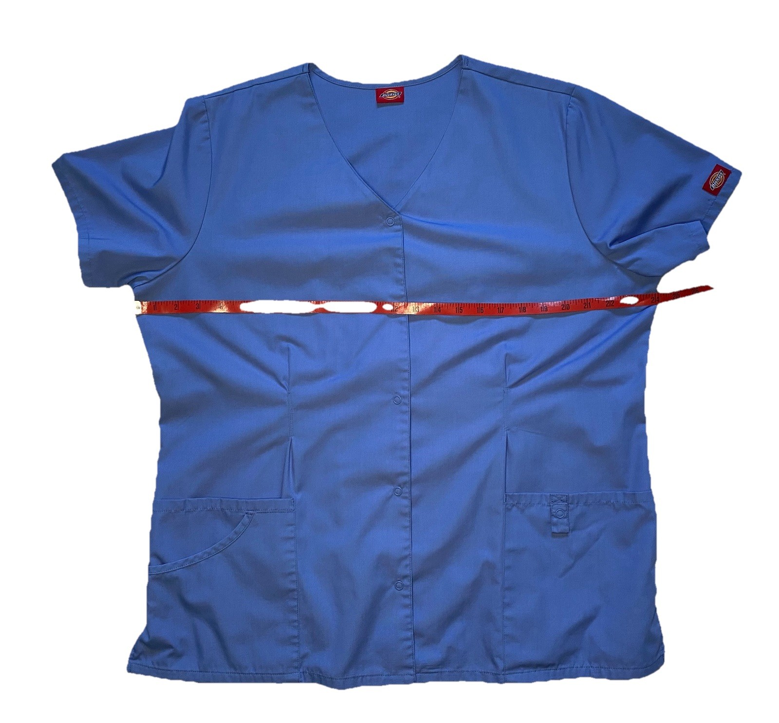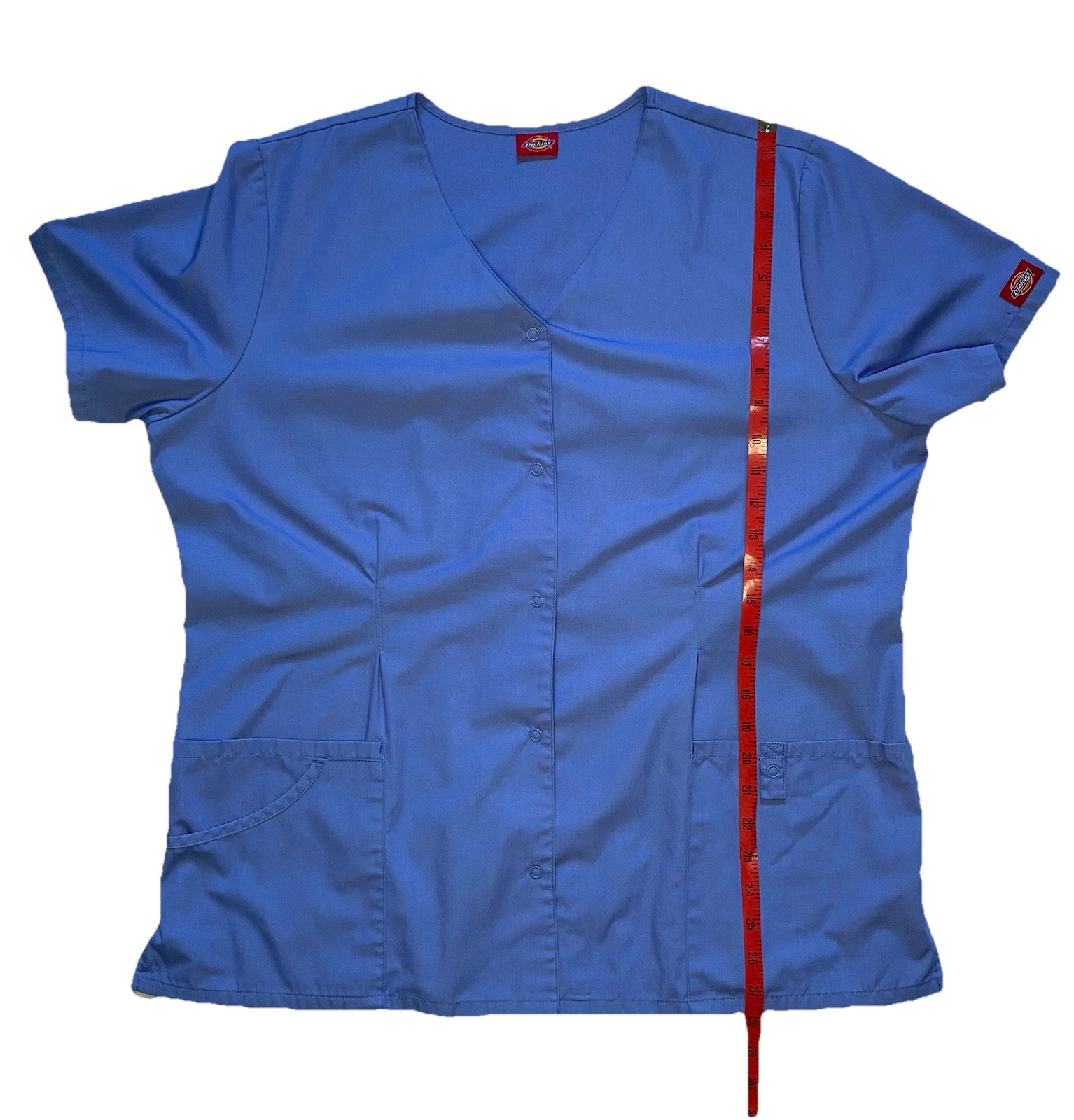 DICKIES Women's Blue Scrub Top/Jacket Snap Front Short Sleeve Size XL Excellent