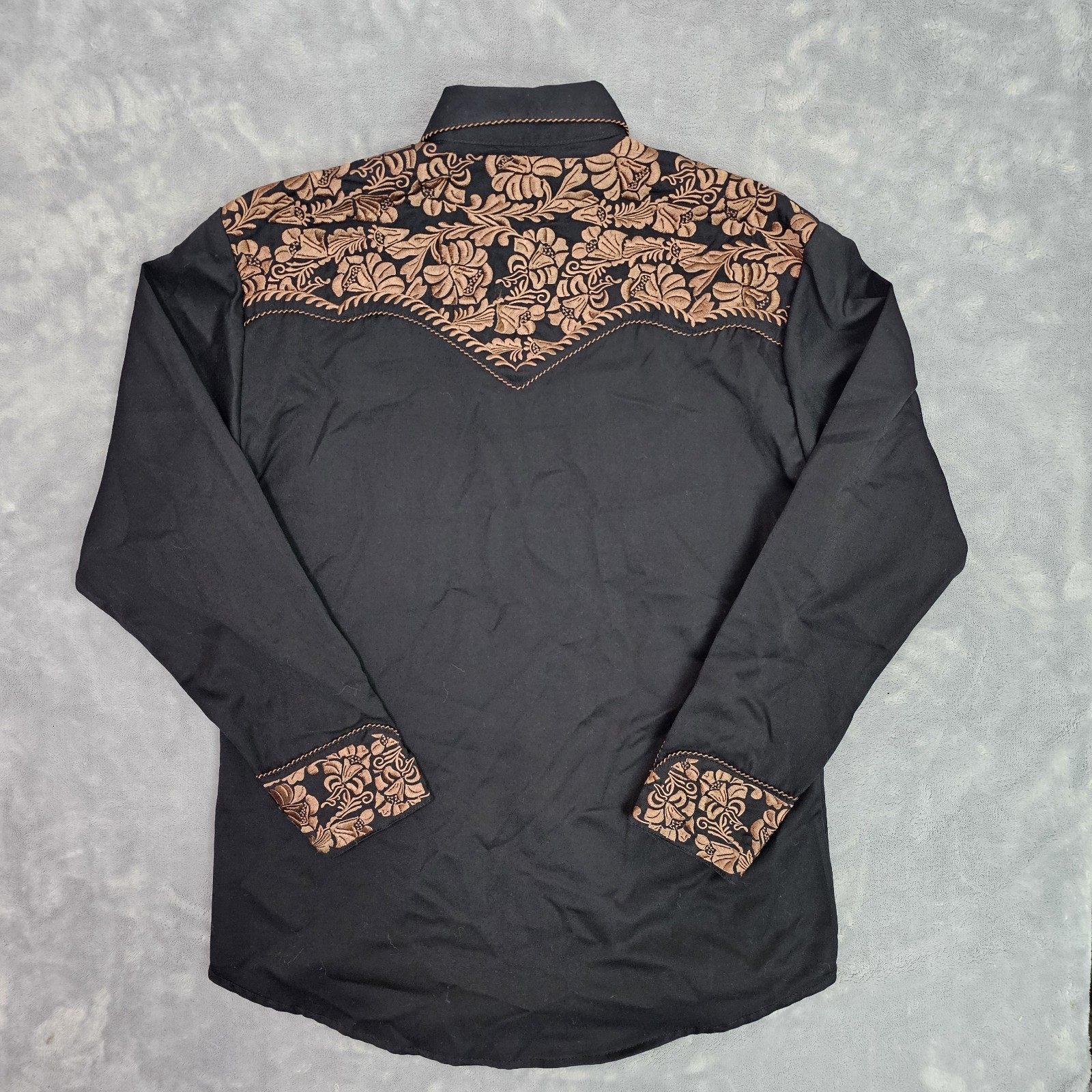 Scully Floral Tooled Embroidery Western Long Sleeve Pearl Snap Men s M Black