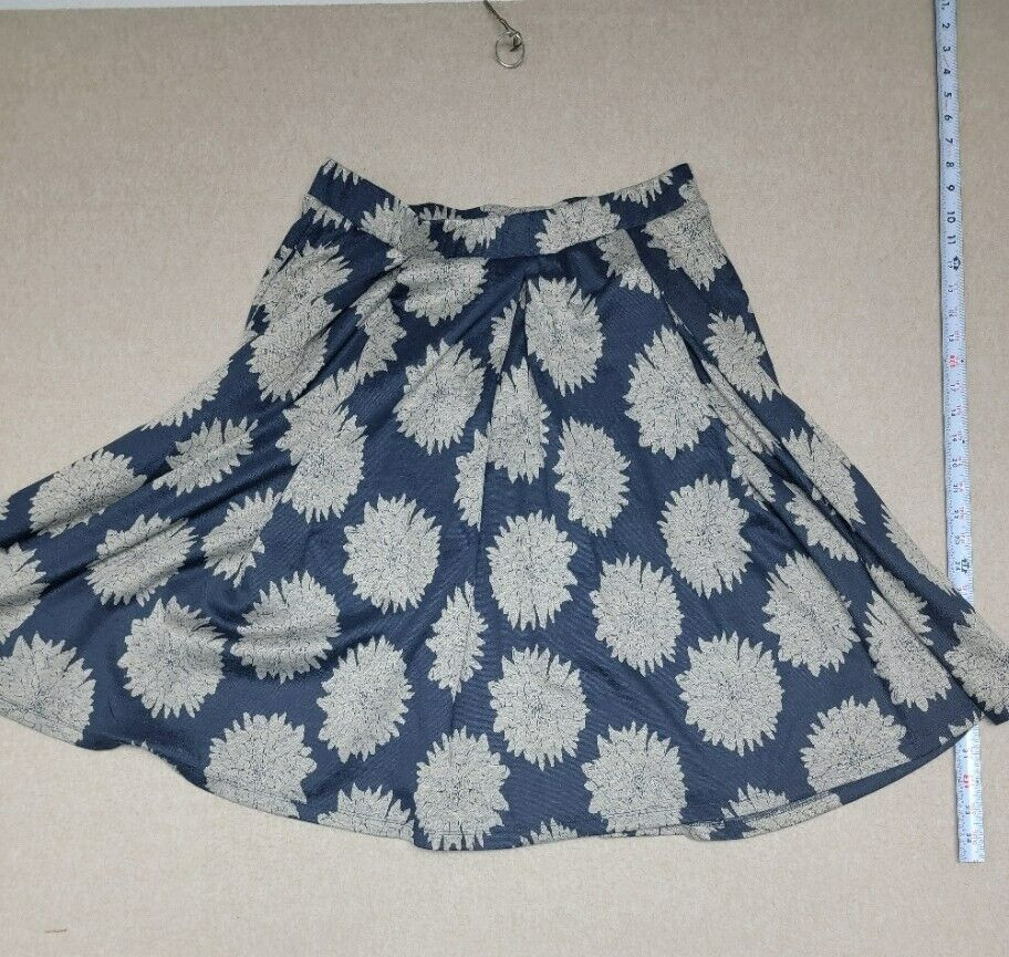 как выглядит LULAROE Womans LARGE Navy/Gray Floral Jacquard A-line Full Pleated Skirt Pockets фото