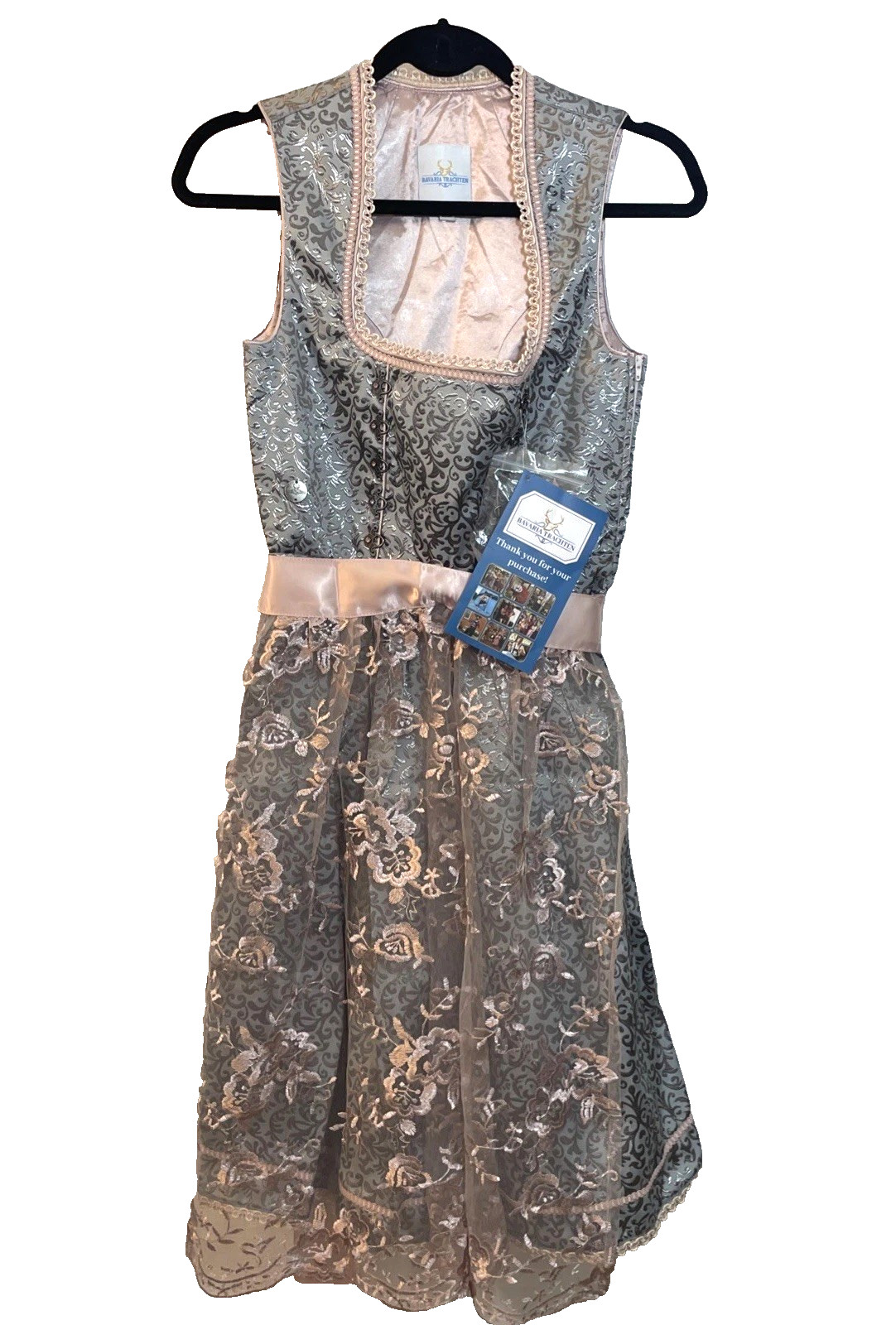 как выглядит BAVARIA TRACHTEN German Traditional Dirndl Dress Oktoberfest Silver Rose XS NWT фото