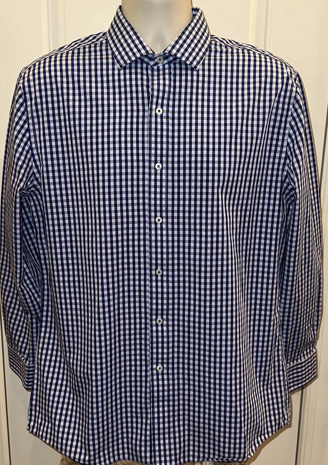 как выглядит Tommy Hilfiger Mens Blue Plaid Buttoned Slim Fit Long Sleeve Shirt Sz 16x32/33 фото