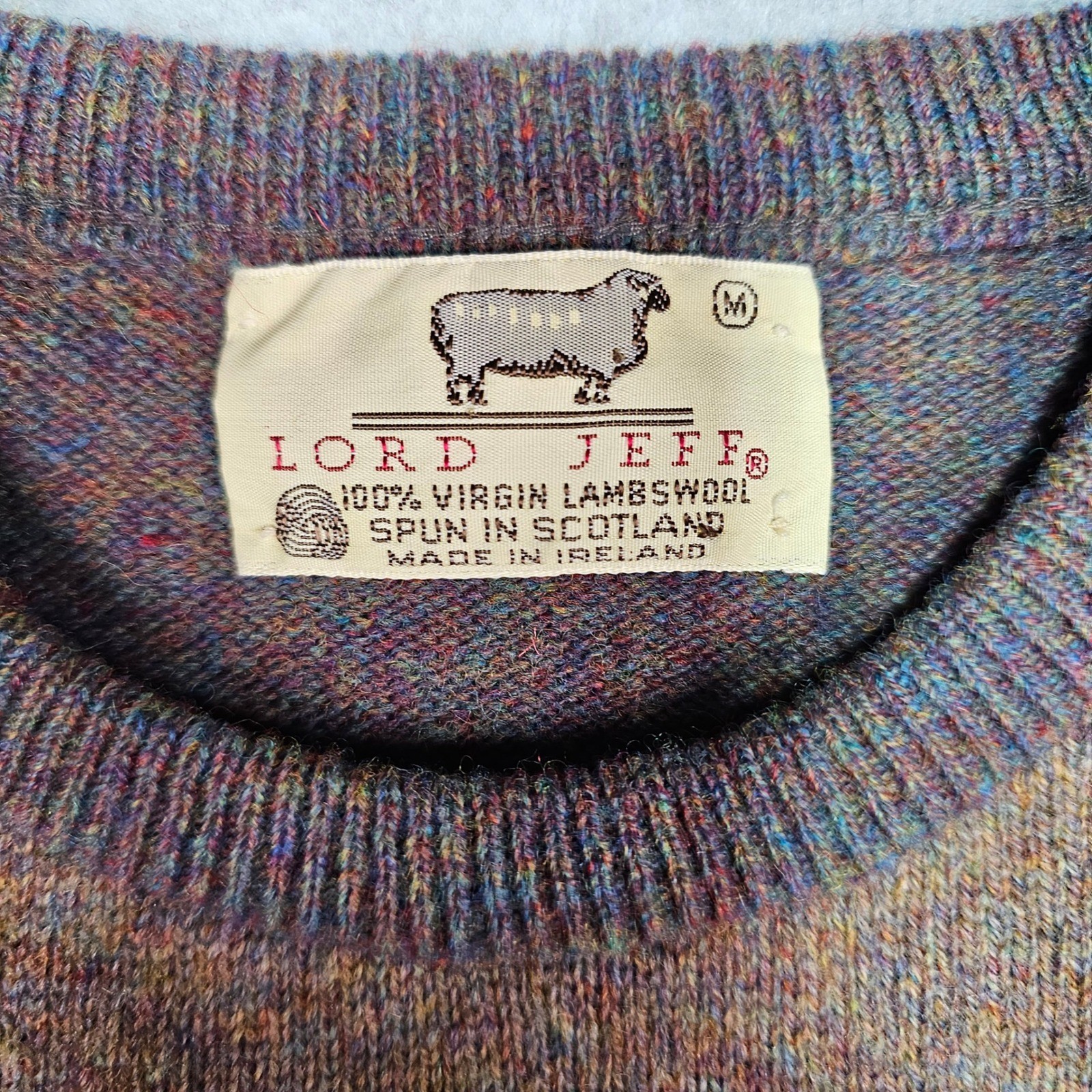 Lord Jeff Vintage Ireland Lambswool Sweater Mens Medium Multicolor Geometric