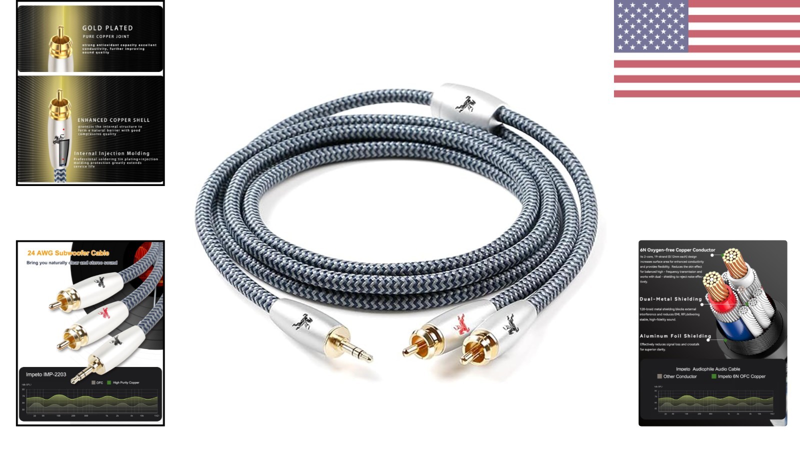 Особенности: Gold Plated, Cotton Braided, Durable, High-Performance, Stylish Design, Reinforced Copper Shell