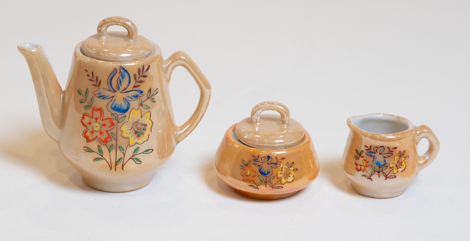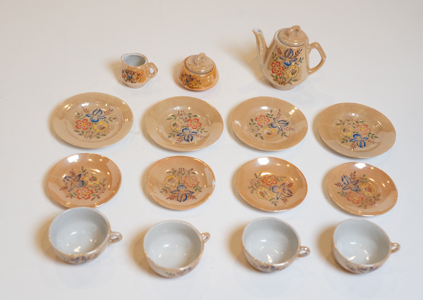 • VINTAGE CHILD'S PORCELAIN MINIATURE LUSTREWARE TEA SET WITH BOX JAPAN