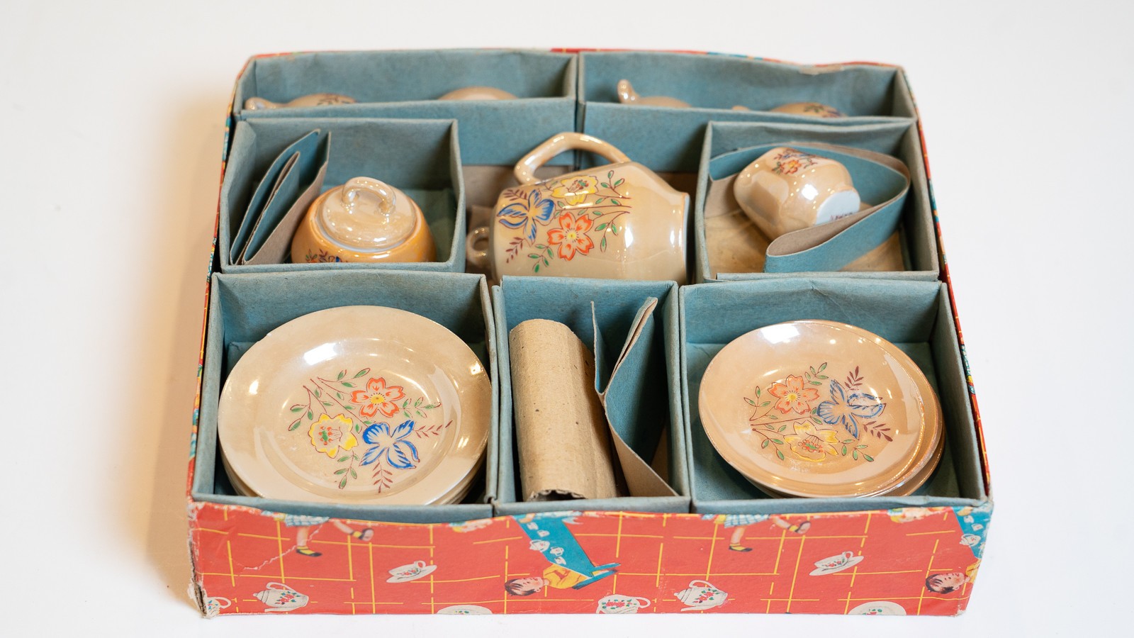 VINTAGE CHILD'S PORCELAIN MINIATURE LUSTREWARE TEA SET WITH BOX JAPAN