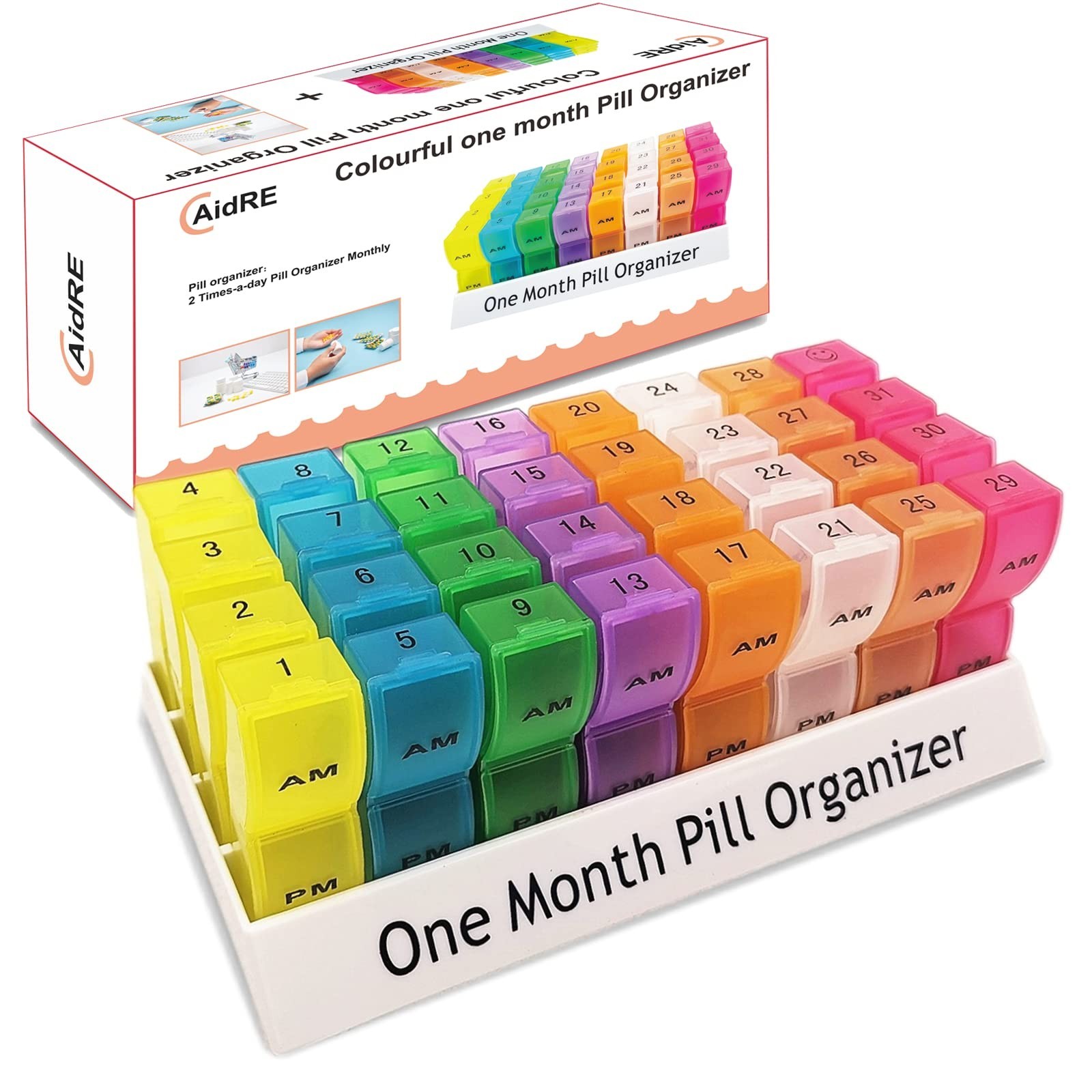 Package include: 1 x Monthly Pill Organizer, includes 31 day and additional AM/PM