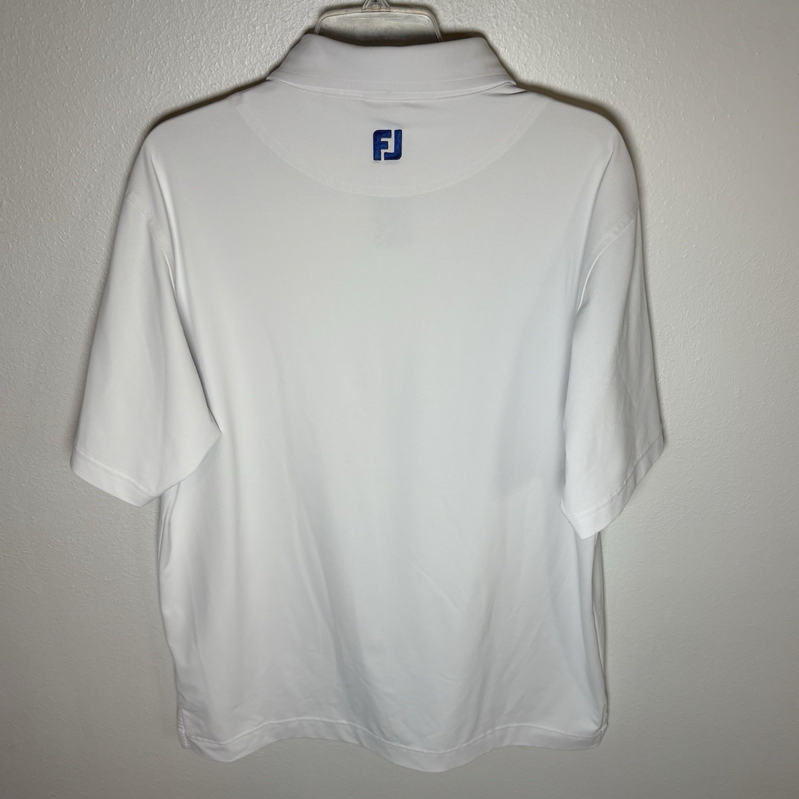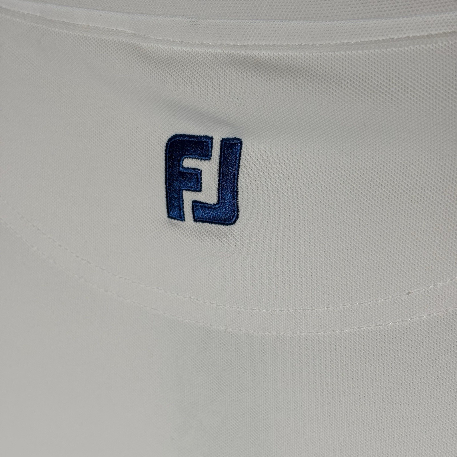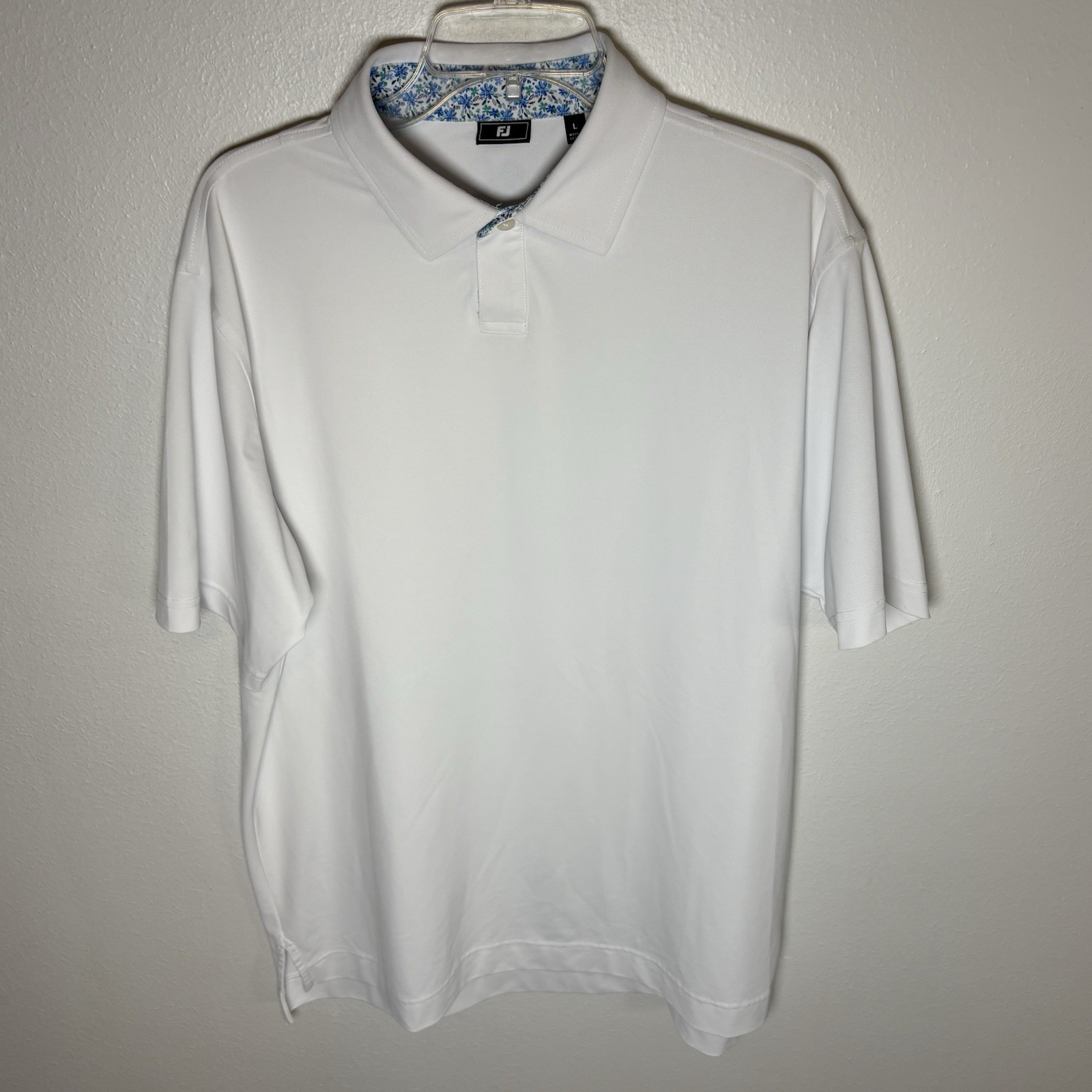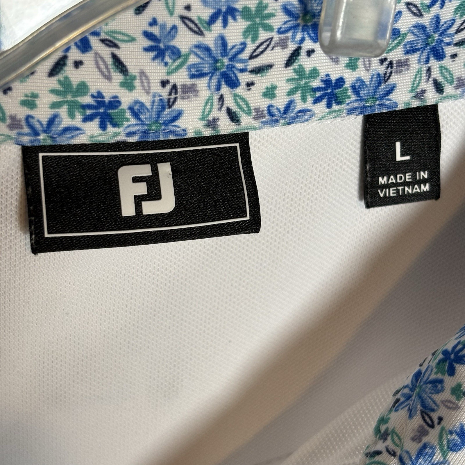 Footjoy FJ Golf Polo Shirt Mens L White w/ Floral Trim Performance Lisle Stretch