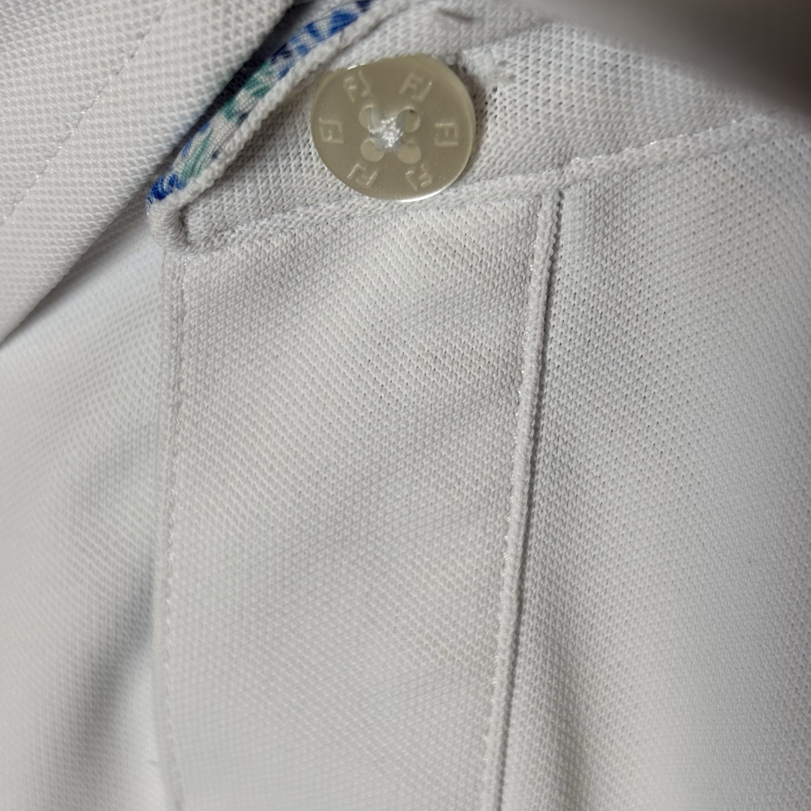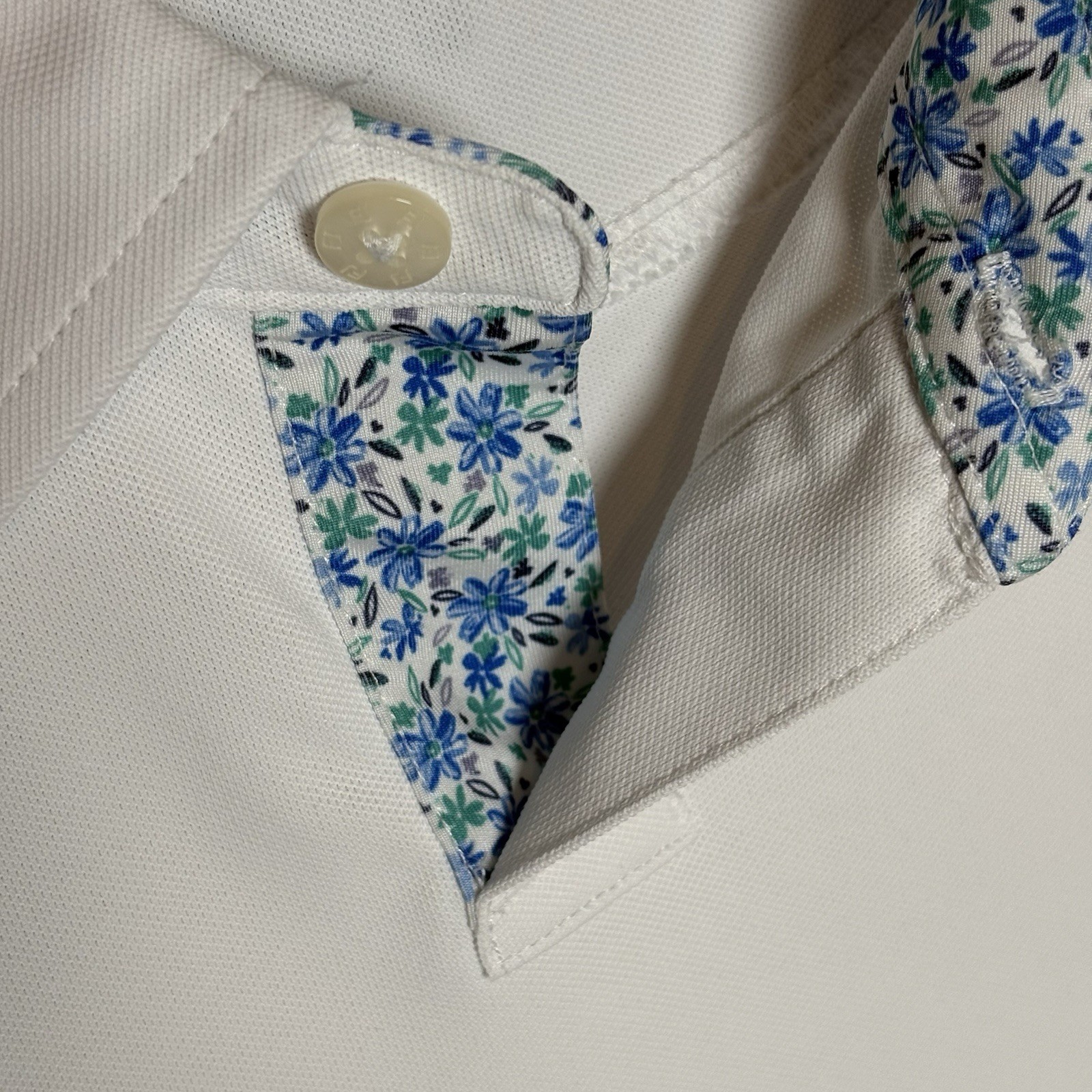 как выглядит Footjoy FJ Golf Polo Shirt Mens L White w/ Floral Trim Performance Lisle Stretch фото