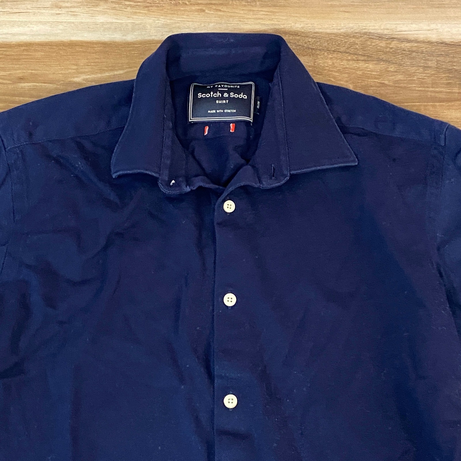 как выглядит Scotch Soda Mens My Favourite Shirt Slim Fit Navy Blue Pique Stretch Medium фото