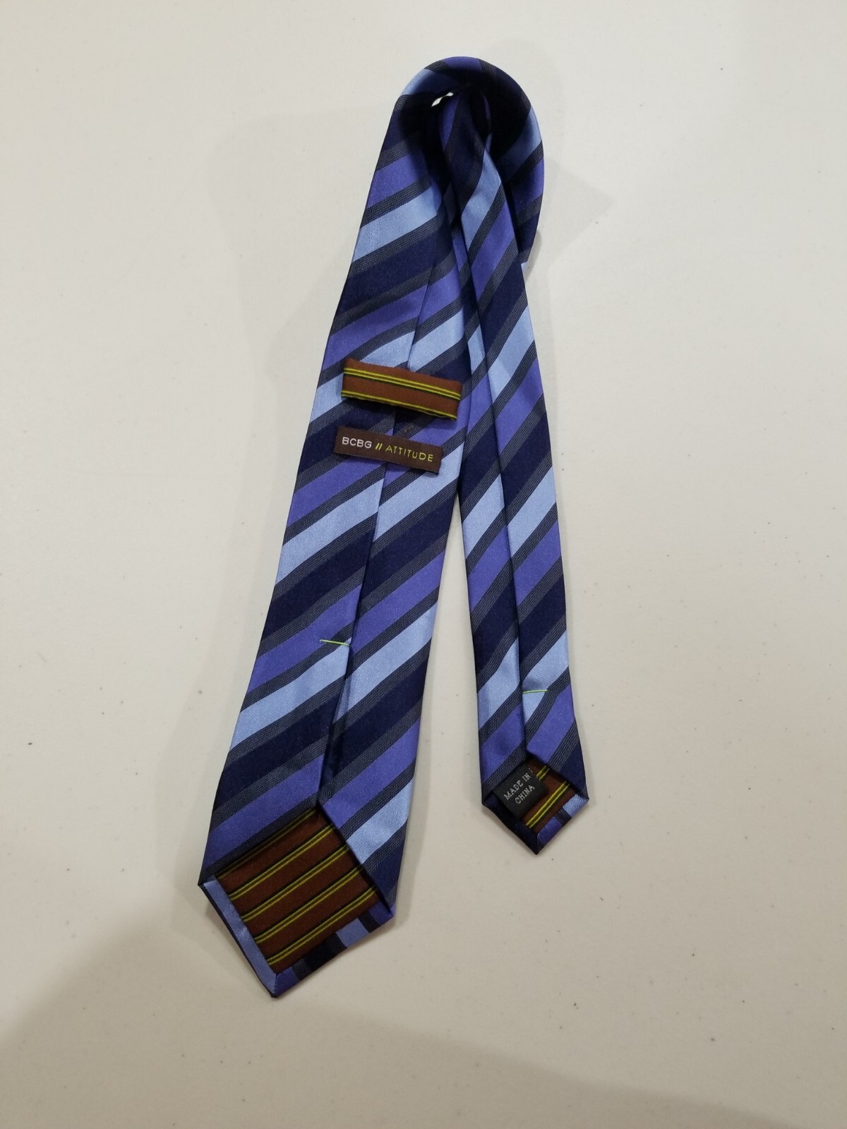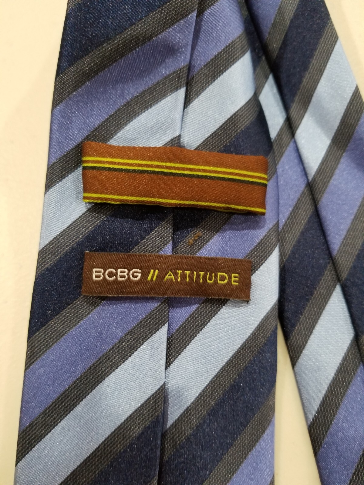как выглядит BCBG Attitude Mens Narrow Blue Striped Neck Tie фото