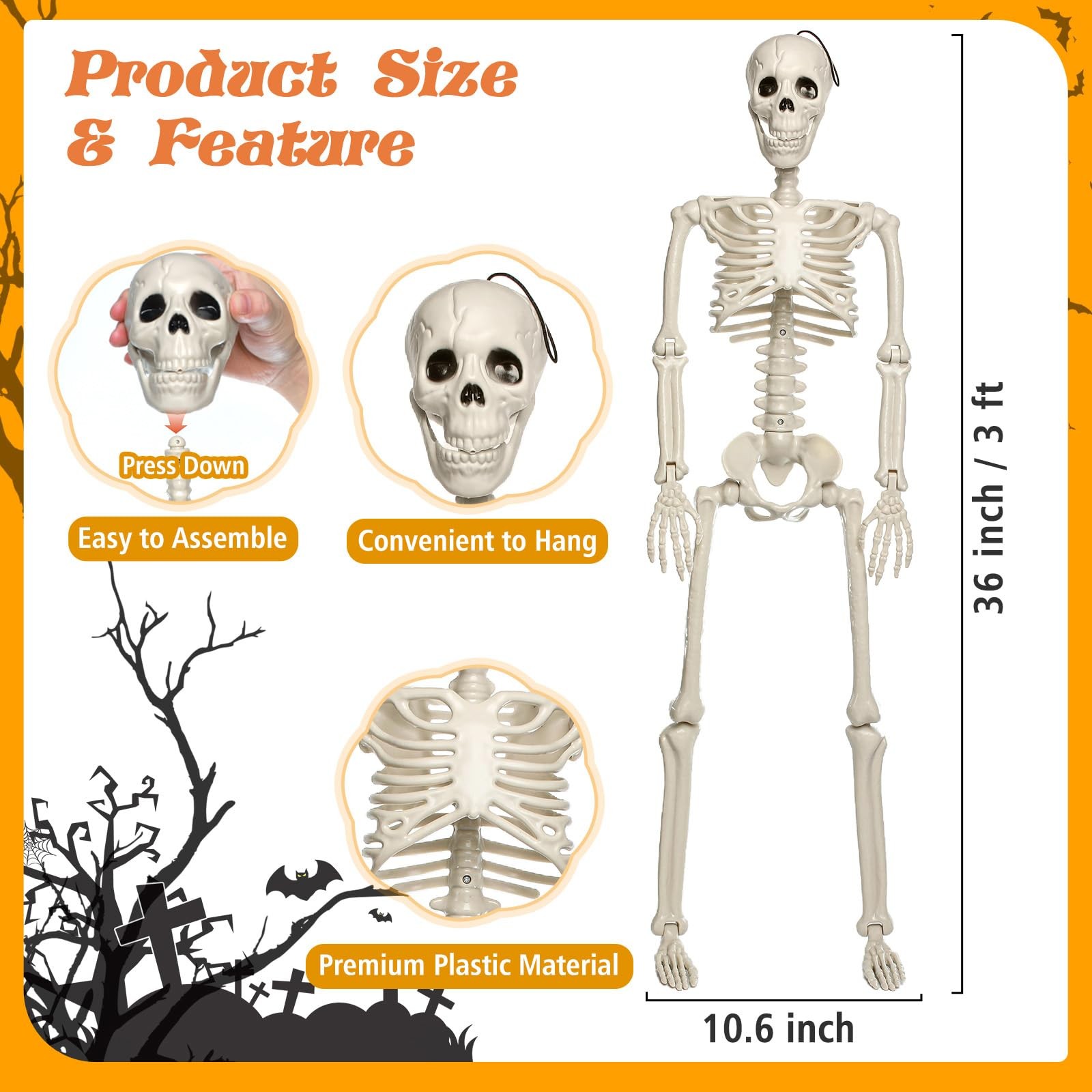 2PCS 3FT Halloween Skeleton Decorations, 36 Full Body Posable Skeleton, Plas...