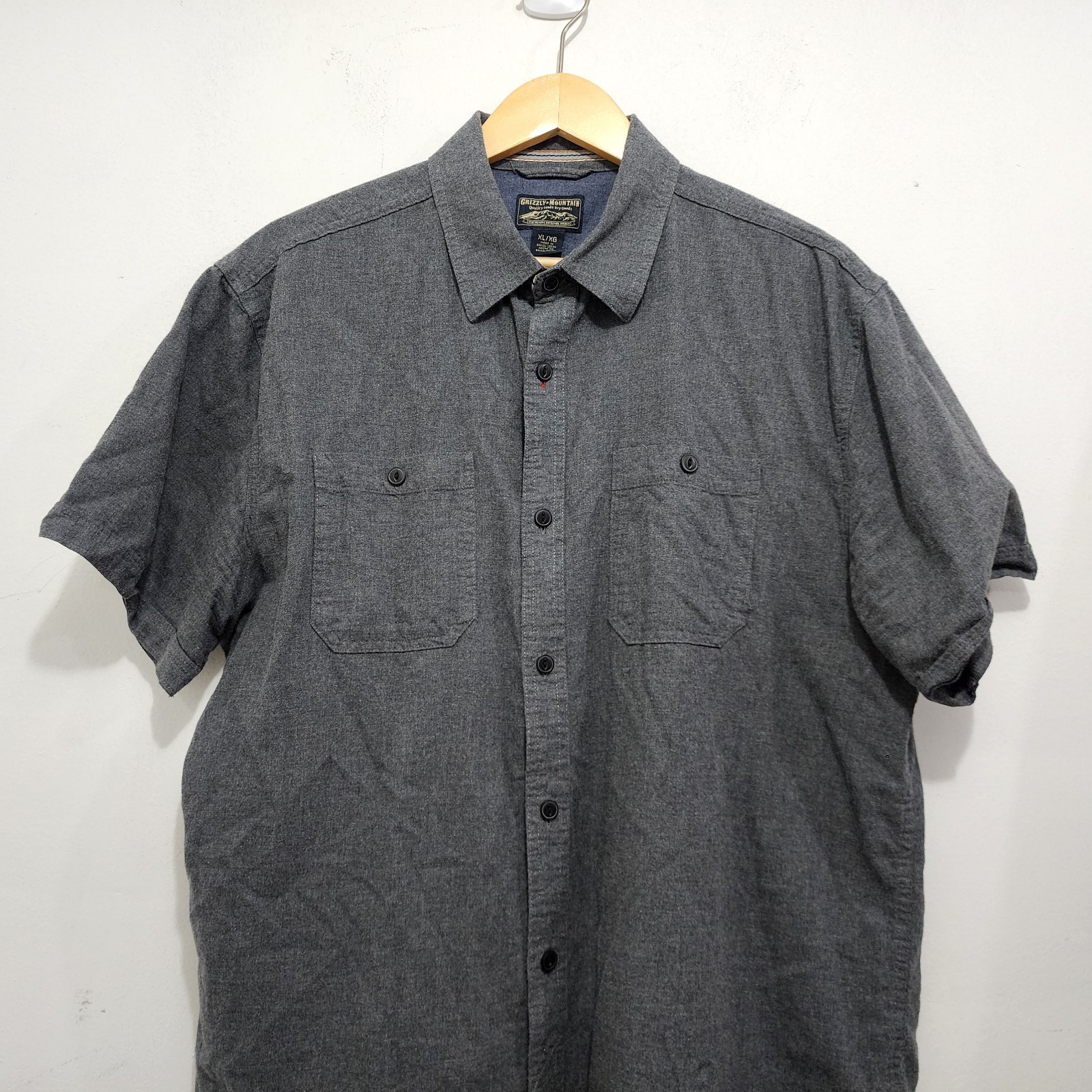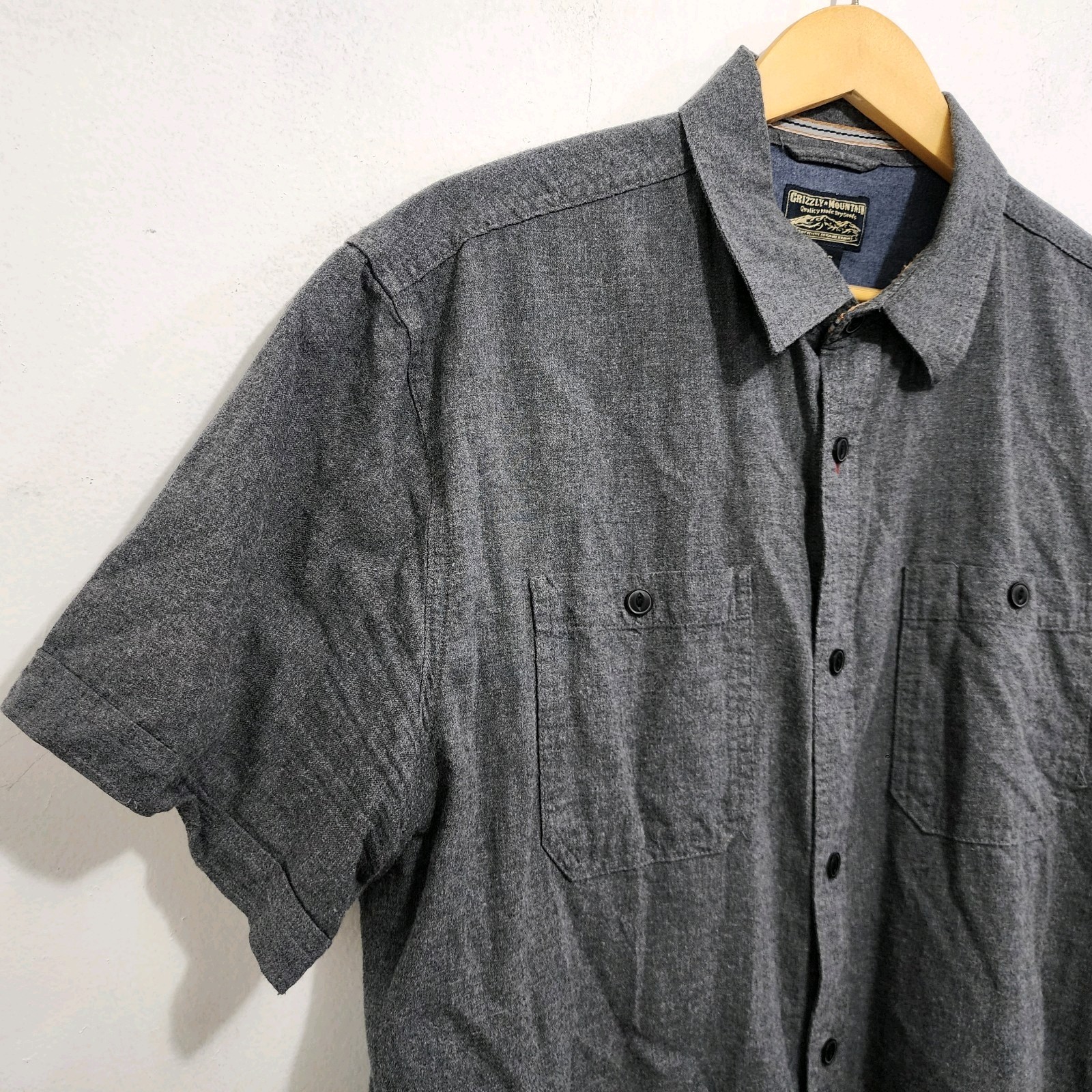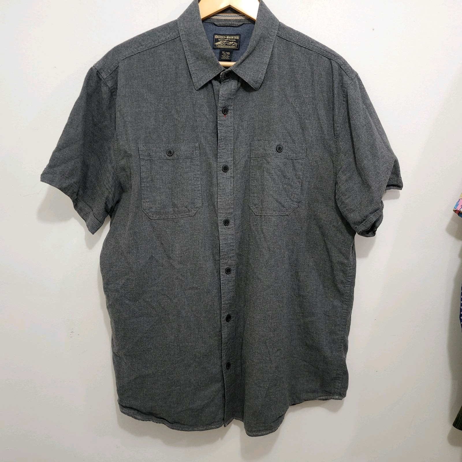 как выглядит Grizzly Mountain Dry Goods Mens Short Sleeve Woven Cotton Shirt Dark Grey Sz XL фото