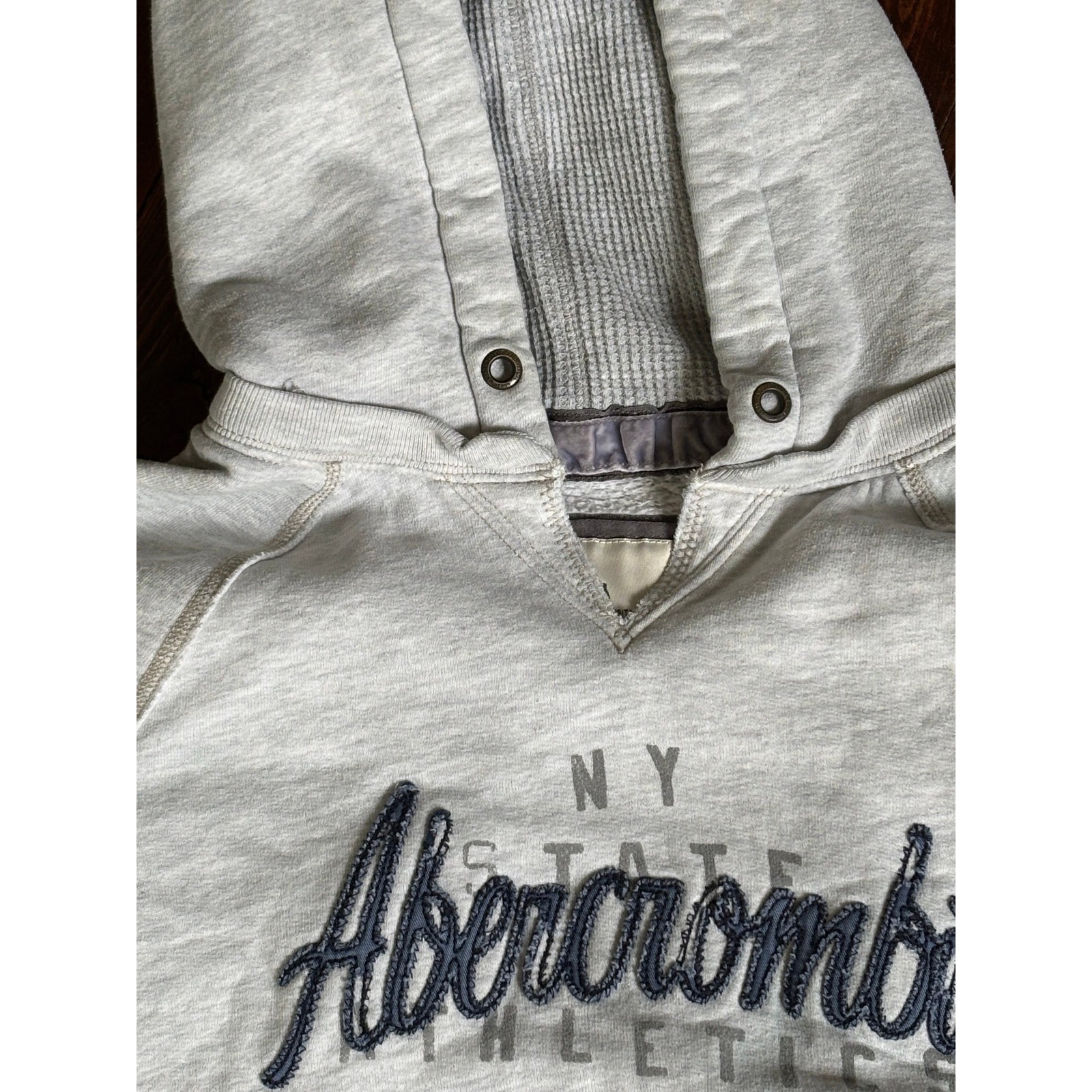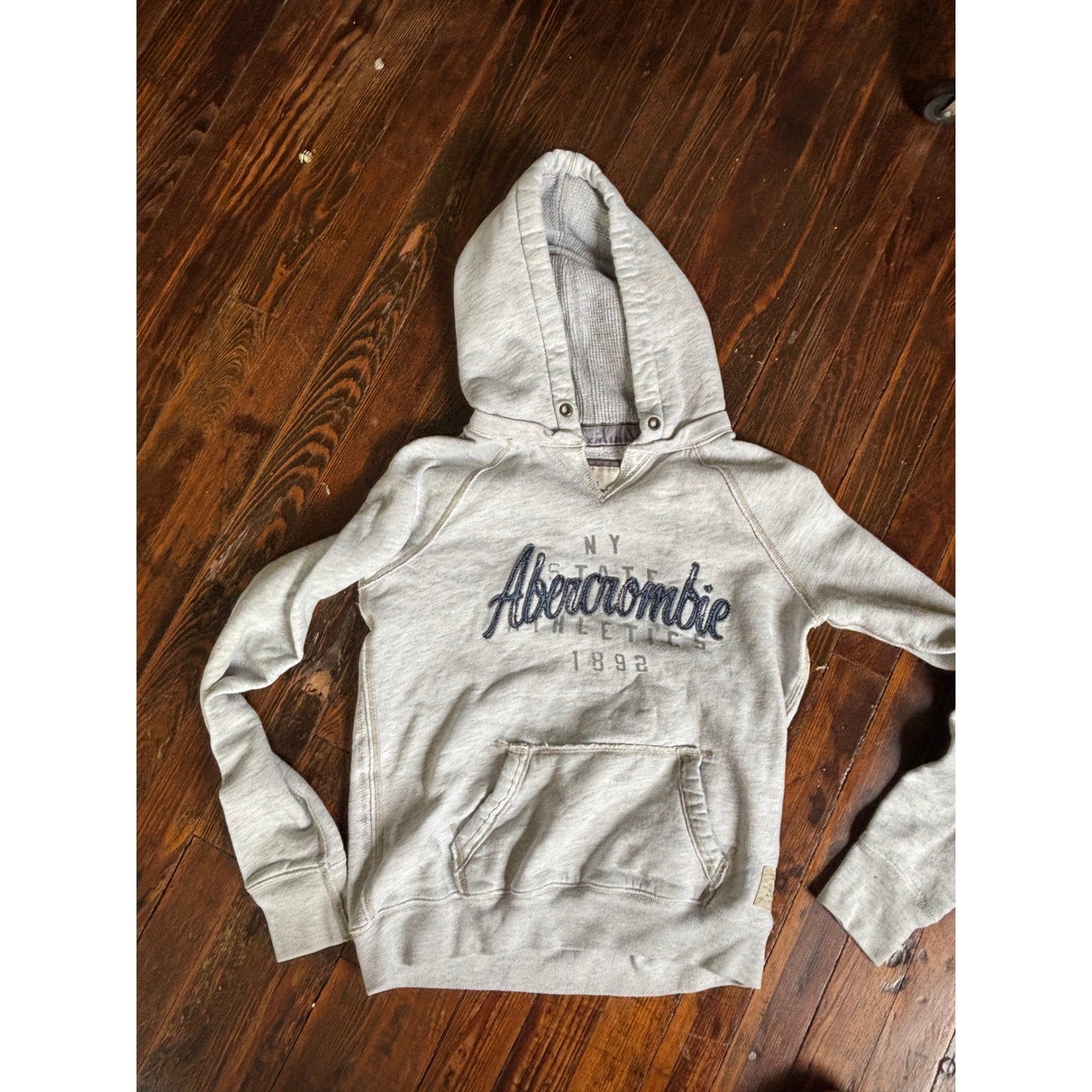 как выглядит Vintage Y2K Abercrombie Fitch Embroidered Hoodie Womens L Shrunken Gray READ фото