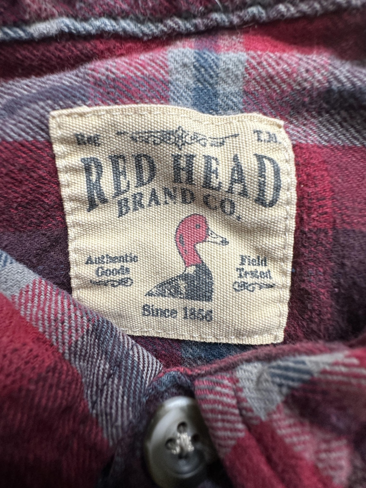 Red Head Flannel Shirt Mens XL Red Blue Plaid Button Down Casual Outdoors Pocket