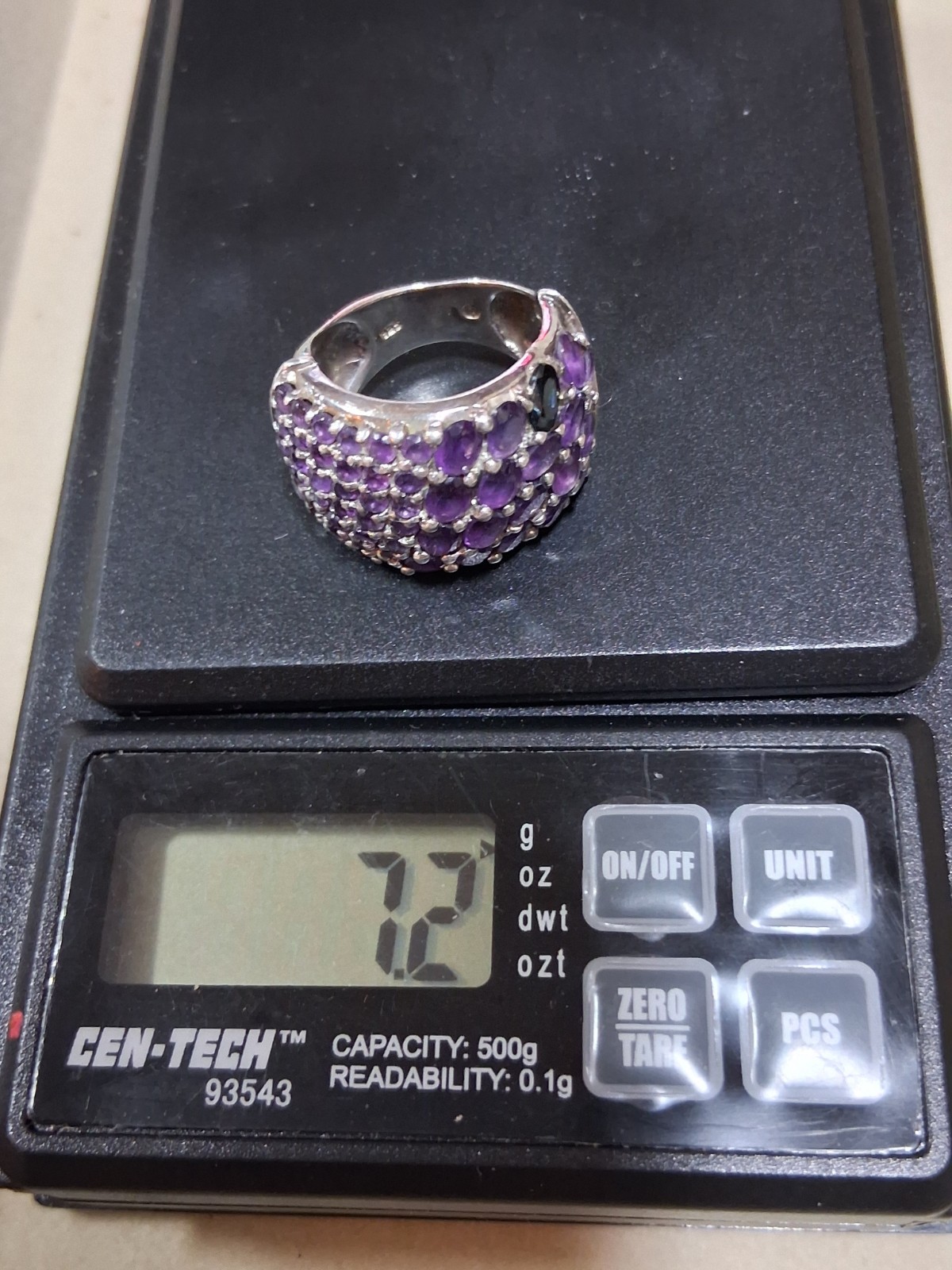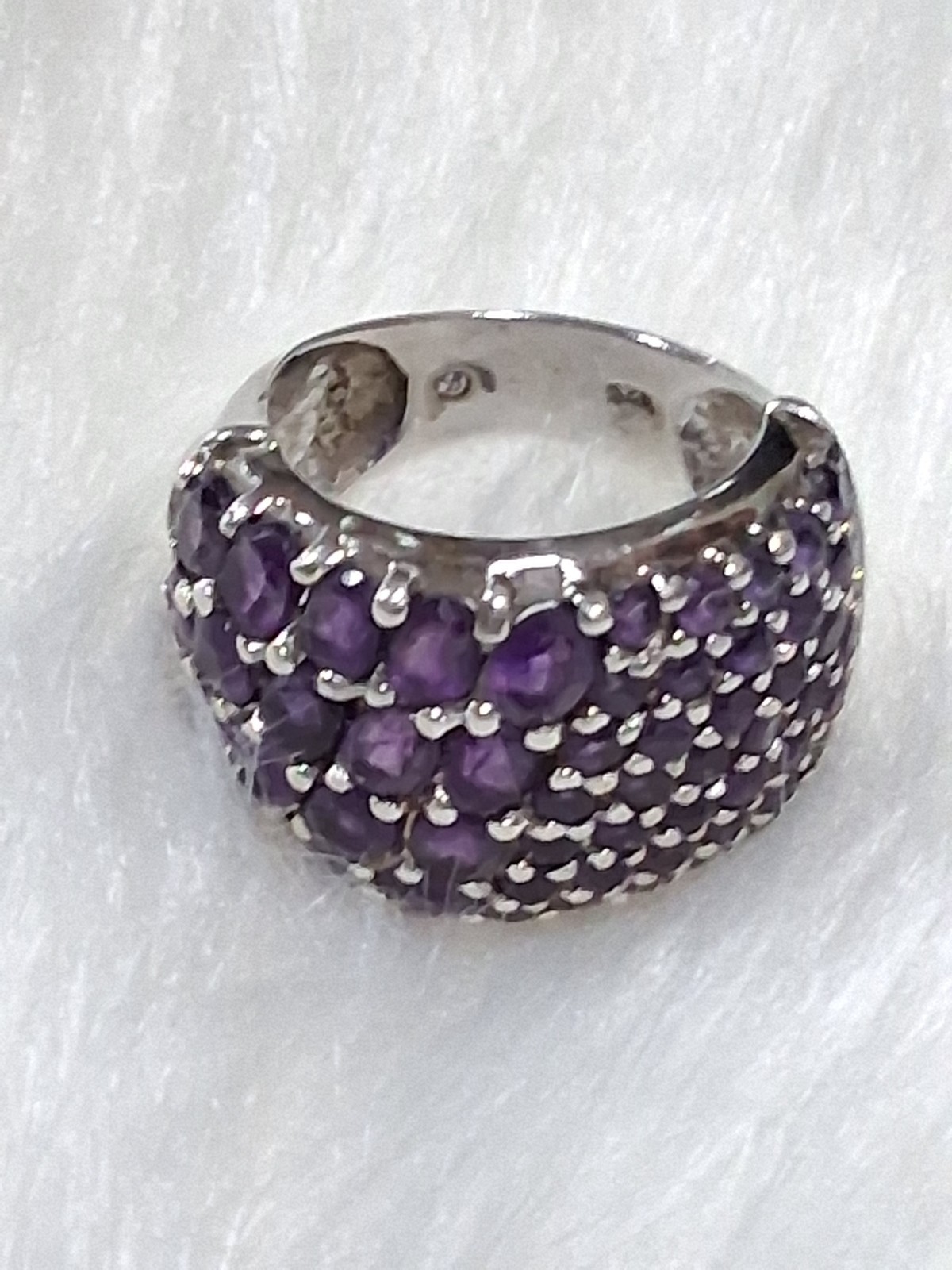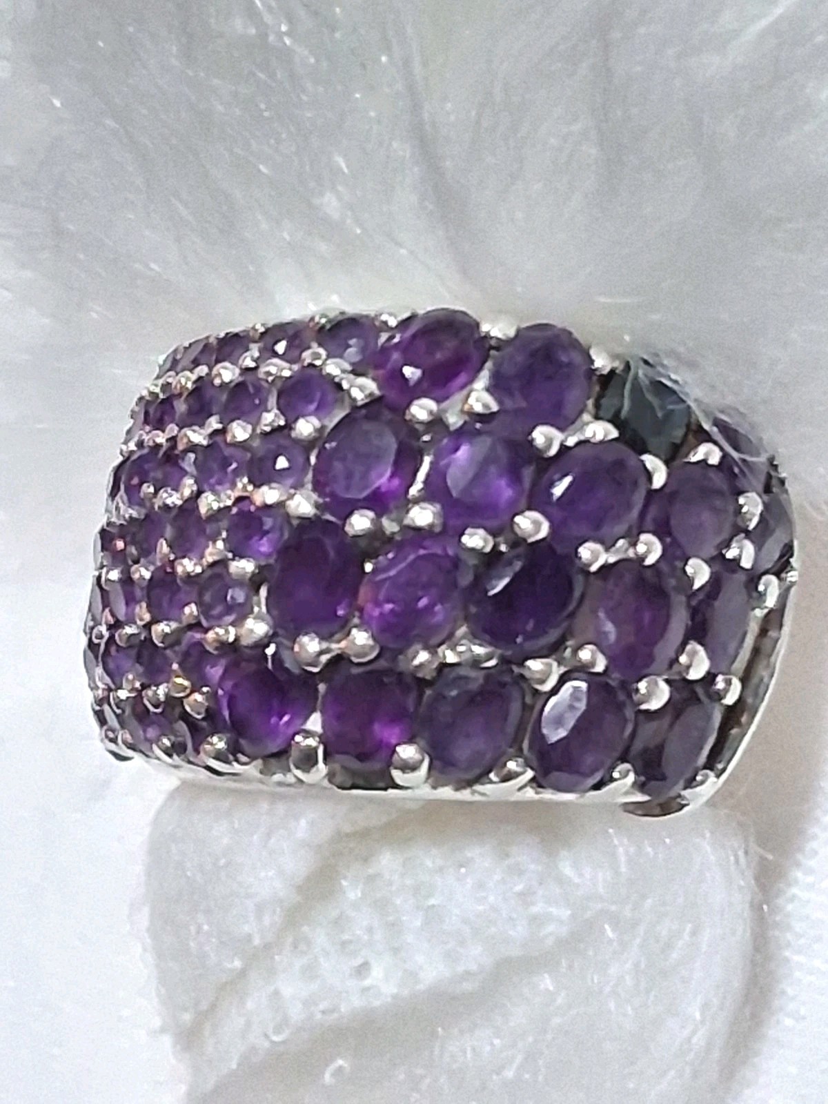 как выглядит 925 Amethyst Ring Natural Sterling Silver Purple Cluster Sz 5.5 WIDE Statement фото