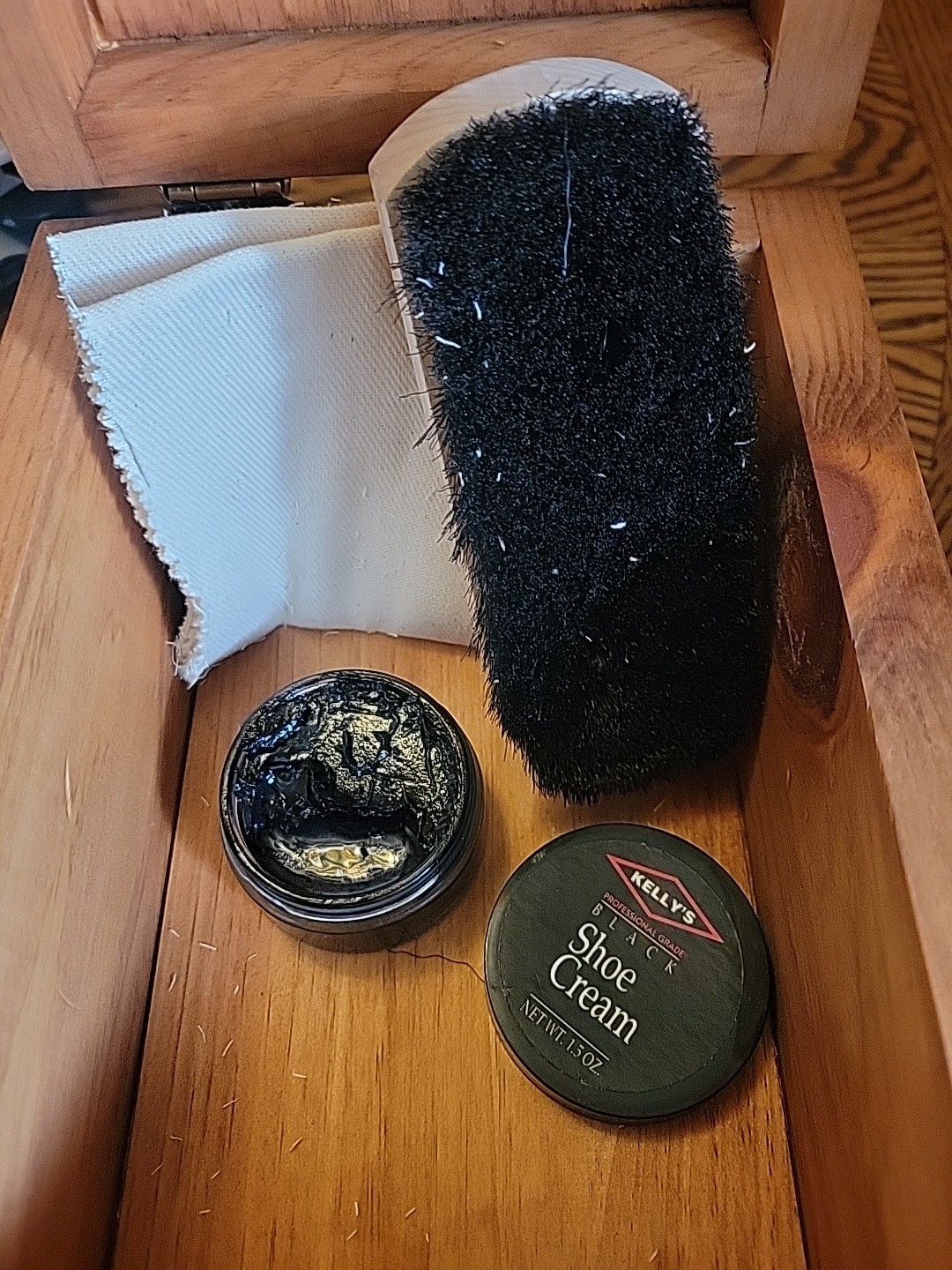 как выглядит Vintage De Luxe Shoe Valet Shoe Shine Kit With 1 Brushes,cloth Polish. See Pics фото