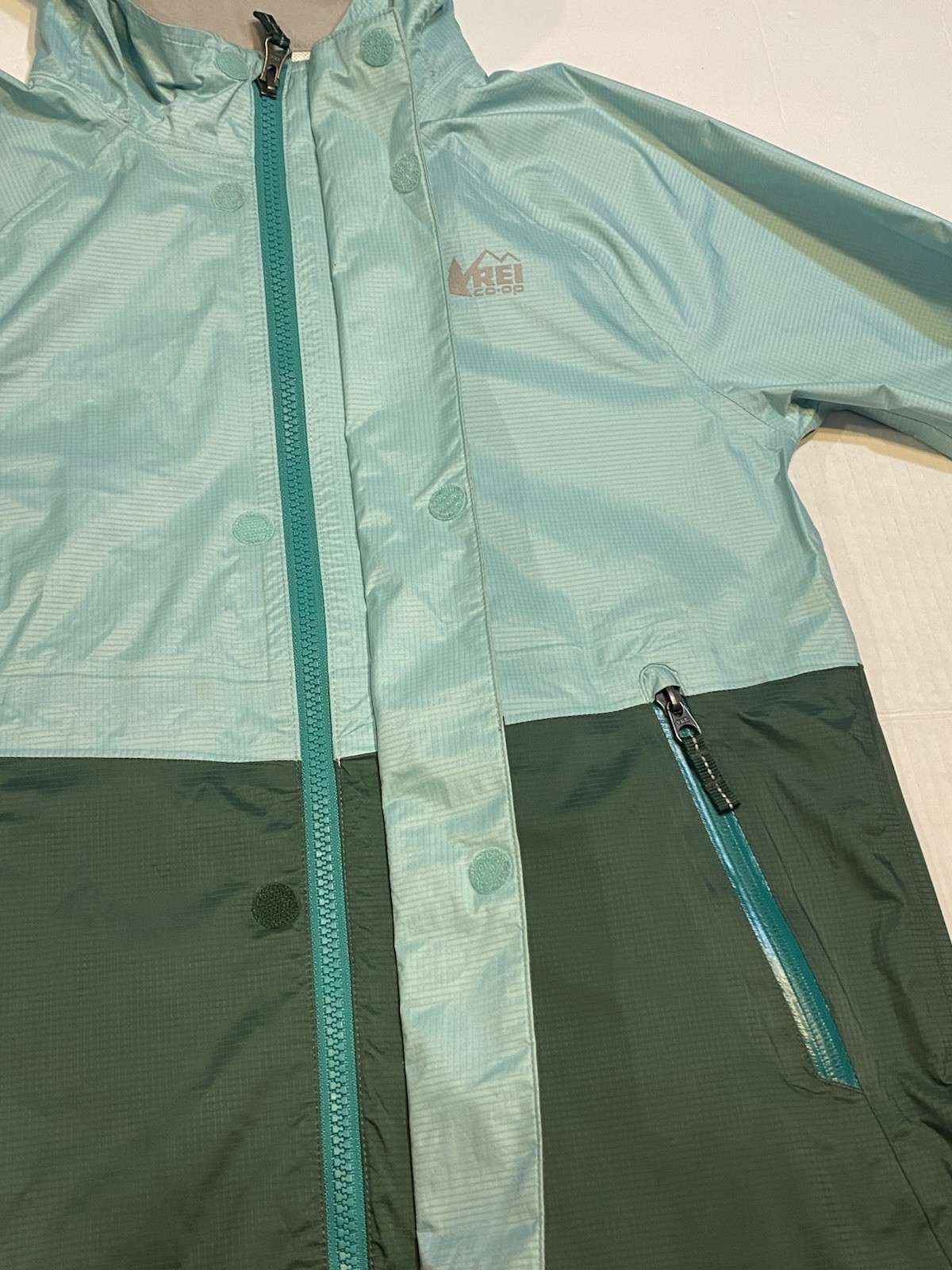 как выглядит REI Co-op Rainwall Rain Jacket Kids M 10-12 Green Waterproof Coat фото