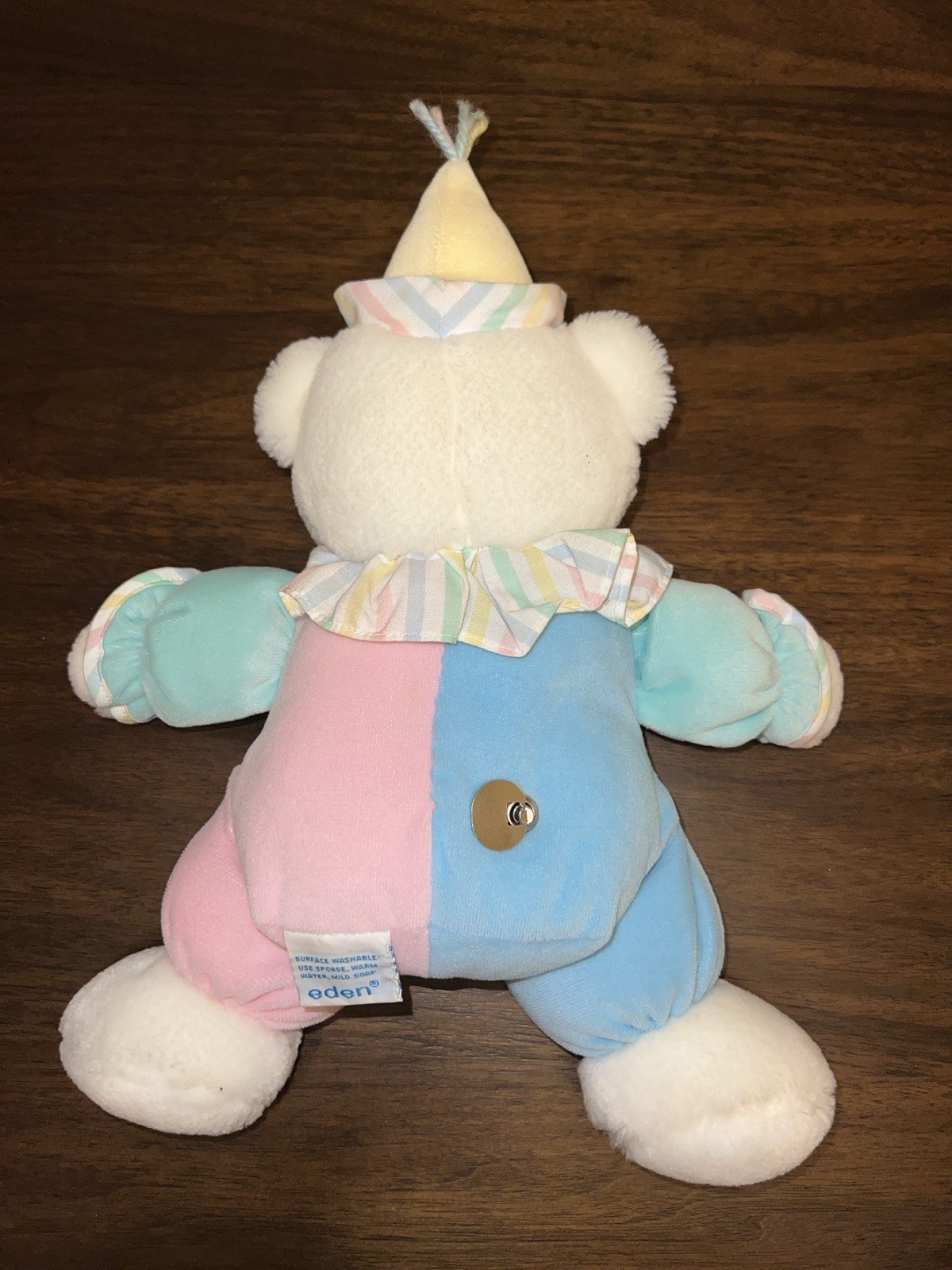 как выглядит Vintage EDEN Pastel Musical Plush Bear Clown it s a Small World Wind Up Nursery фото