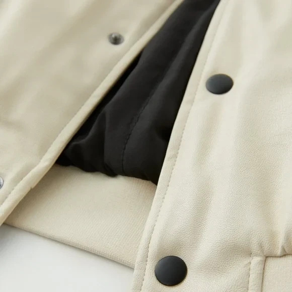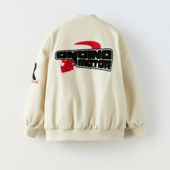 Zara Kids Beige FAUX LEATHER VARSITY BOMBER BEST RACE Size 11-12