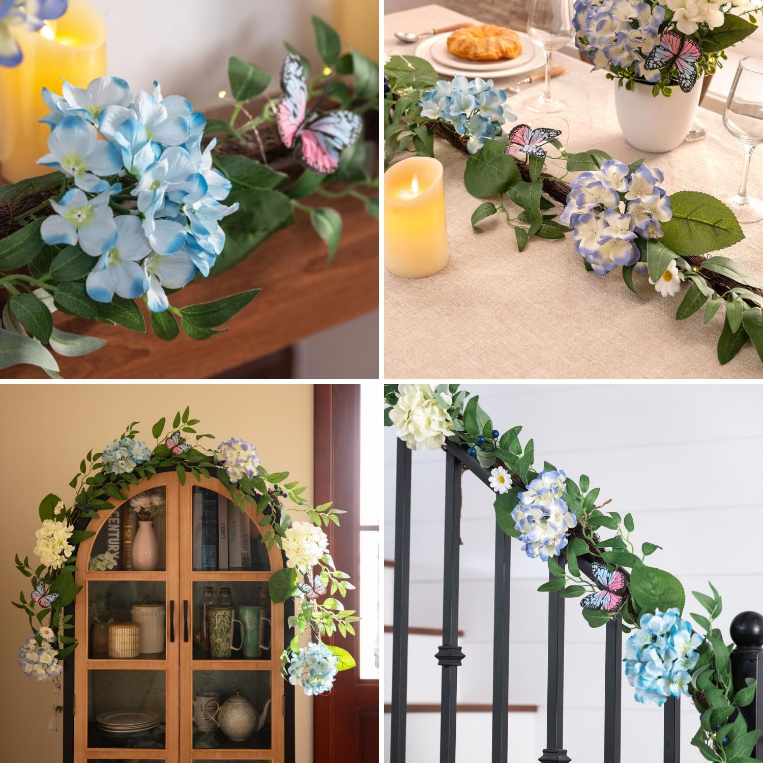 как выглядит 6FT Spring Summer Flower Garland with Lights for Mantle,Blue White Hydrangeas... фото