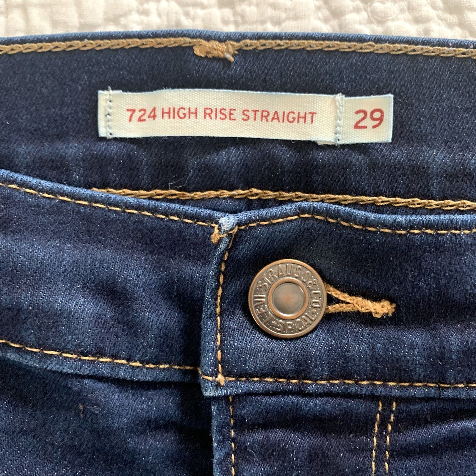 как выглядит Levis 724 Jeans Womens 29 High Rise Straight Leg Blue Denim Dark Wash фото