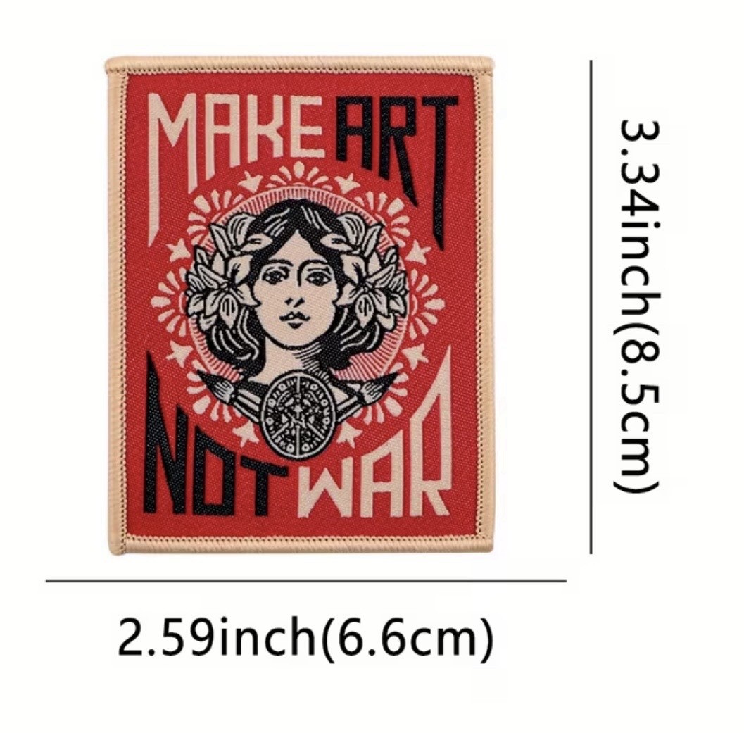 Make Art Not War 3.3x2.5in Embroidered Iron-on Patch Peace