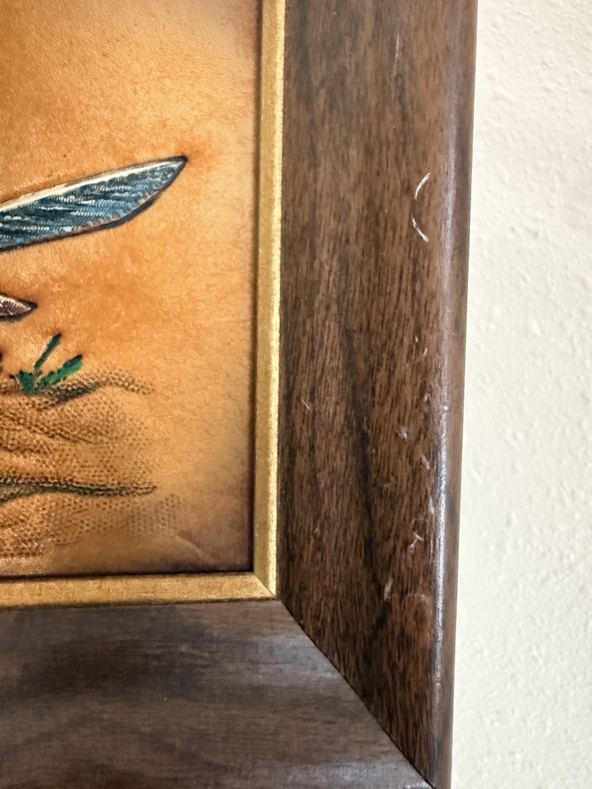 как выглядит Tooled - Carved Dyed Leather Roadrunner In Wood Frame 9x7 фото