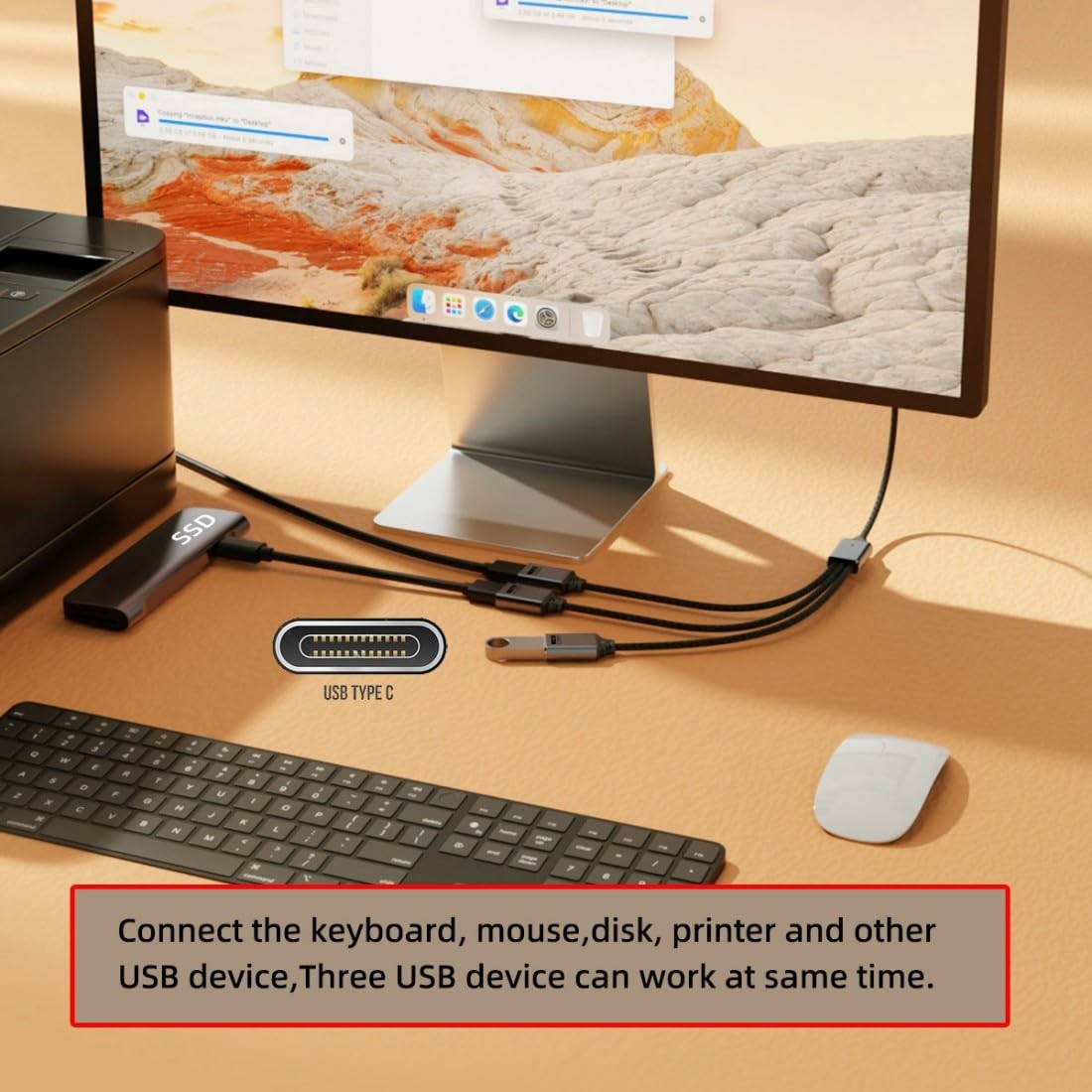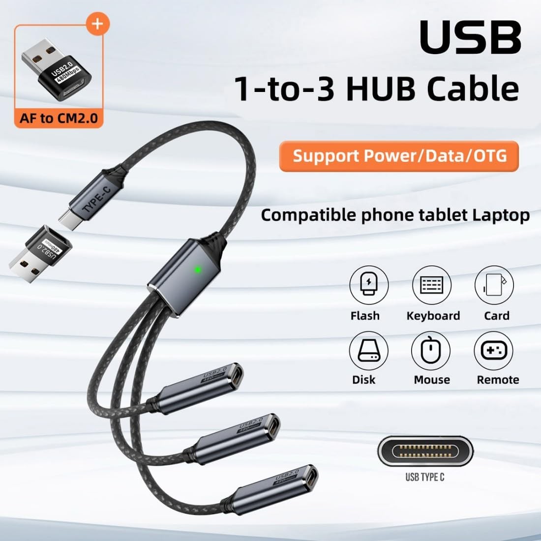 как выглядит chenyang 3 in 1 USB 2.0 Splitter Cable,USB C 1 to 3 HUB Cable Support Black фото