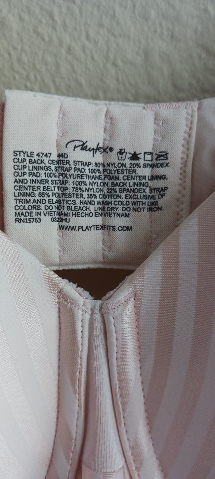 как выглядит Playtex Secrets Perfectly Smooth Underwire Bra 4747 Pink Stripe Size 44D фото