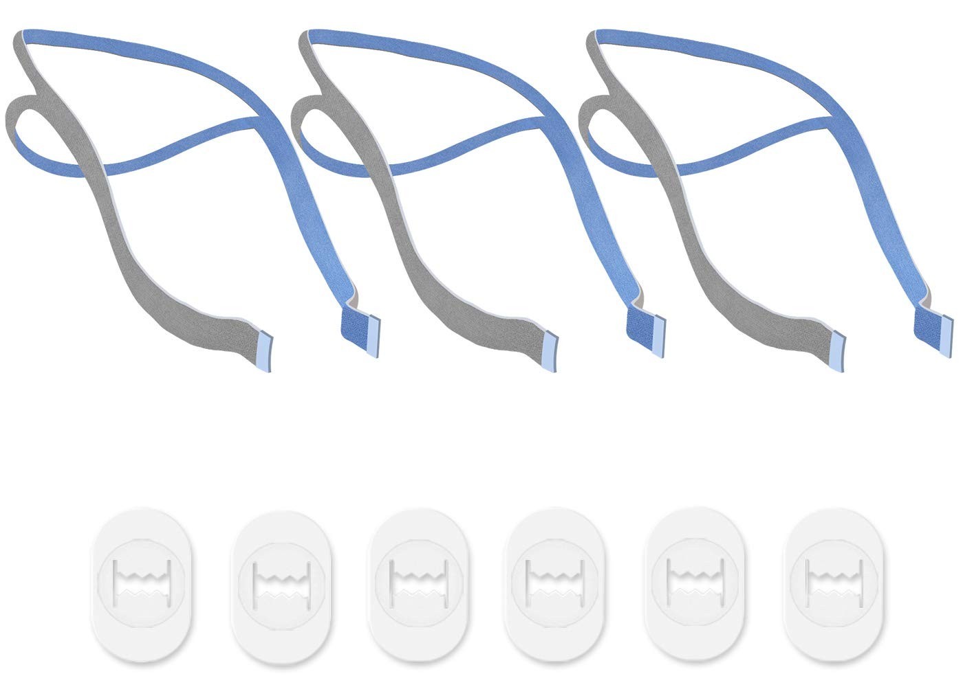 Replacement Headgear for P10 Nasal Pillow Mask - 3 Elastic Straps Clips, 3 Pac