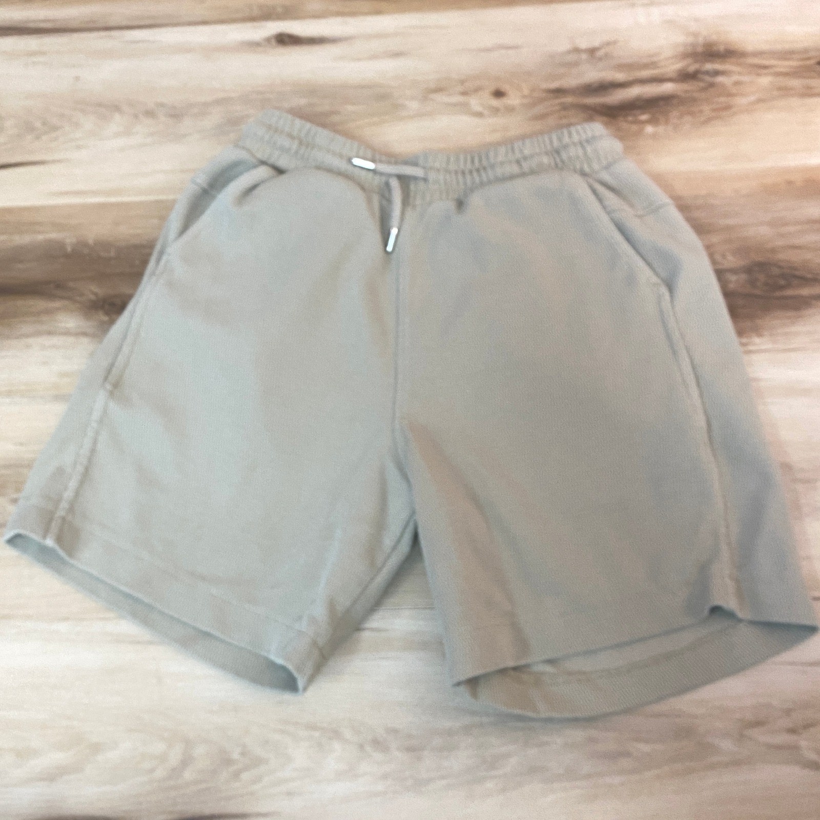 как выглядит Zara Man Textured Knit Drawstring Shorts Khaki Waffle Knit Mens Medium фото