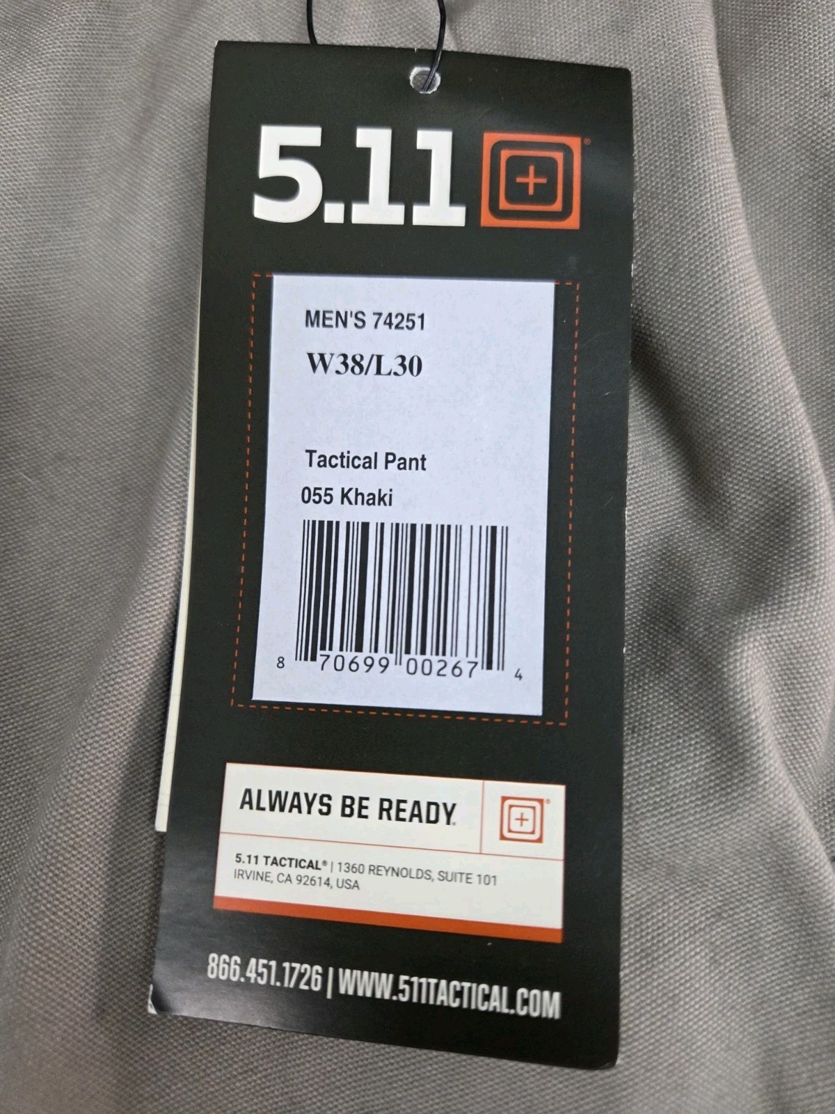 NWT 5.11 Tactical Mens Relaxed Fit Khaki Pants Size 38/30 8480