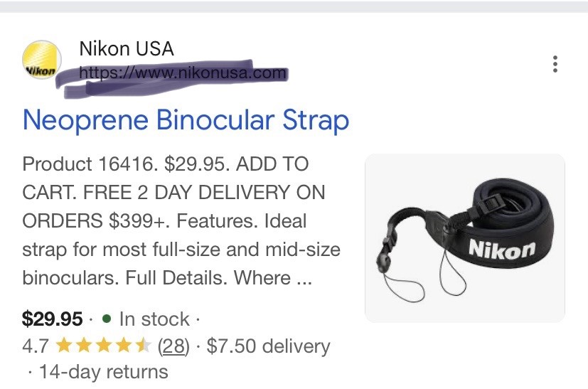 как выглядит NIKON NEW Binocular Neck Strap Neoprene Quick Release Feature фото