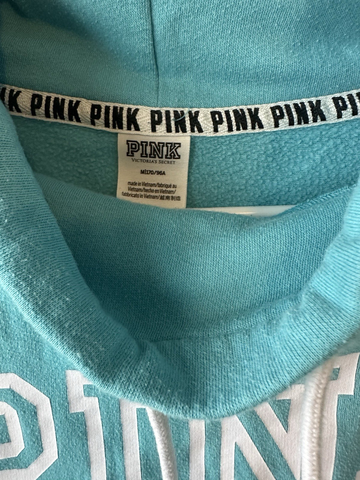 Victoria s Secret Pink Aqua Blue Cowl Neck Pullover White Logo M
