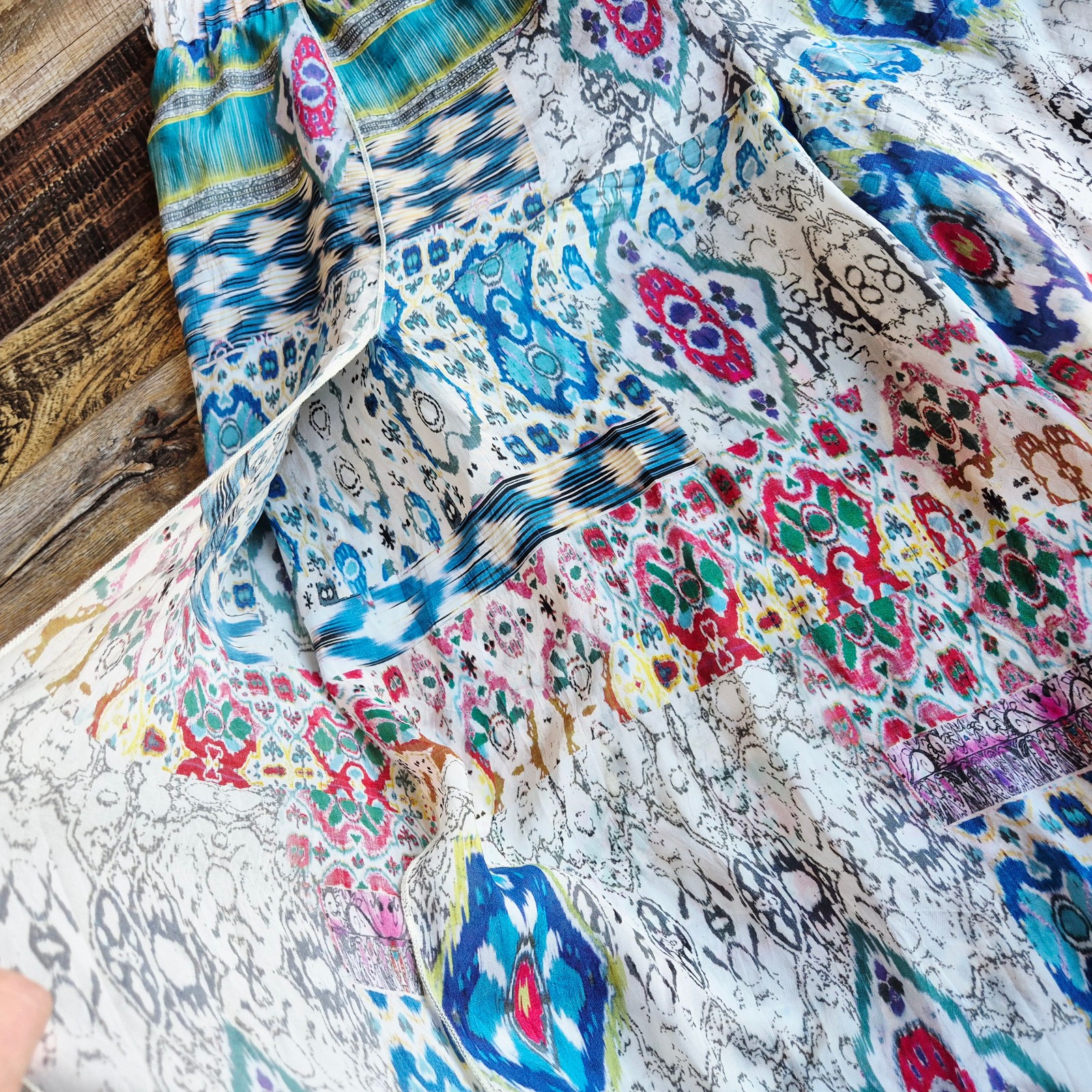 Johnny Was Geo-Printed Ikat Wide Leg Over-Lap Boho Pants Elastic Waist Sz.XL