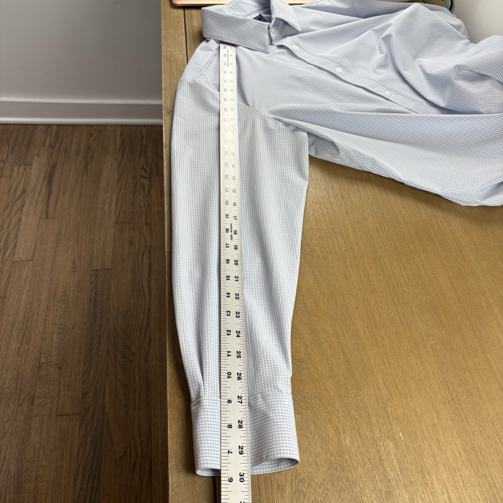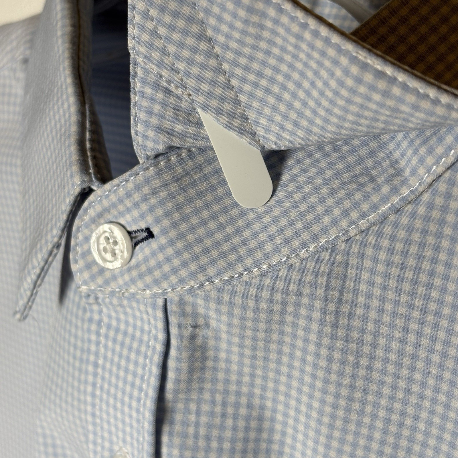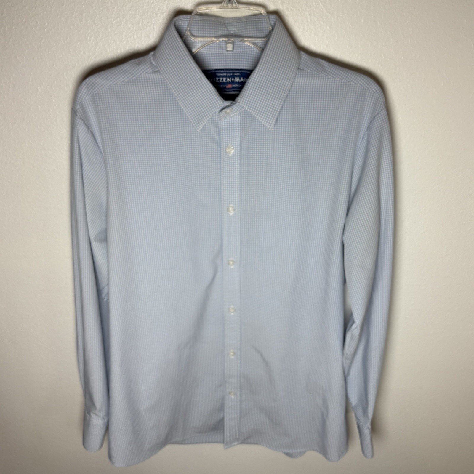 как выглядит Mizzen Main Blue Label Leeward Gingham Check Dress Shirt Men s Large Trim Fit фото
