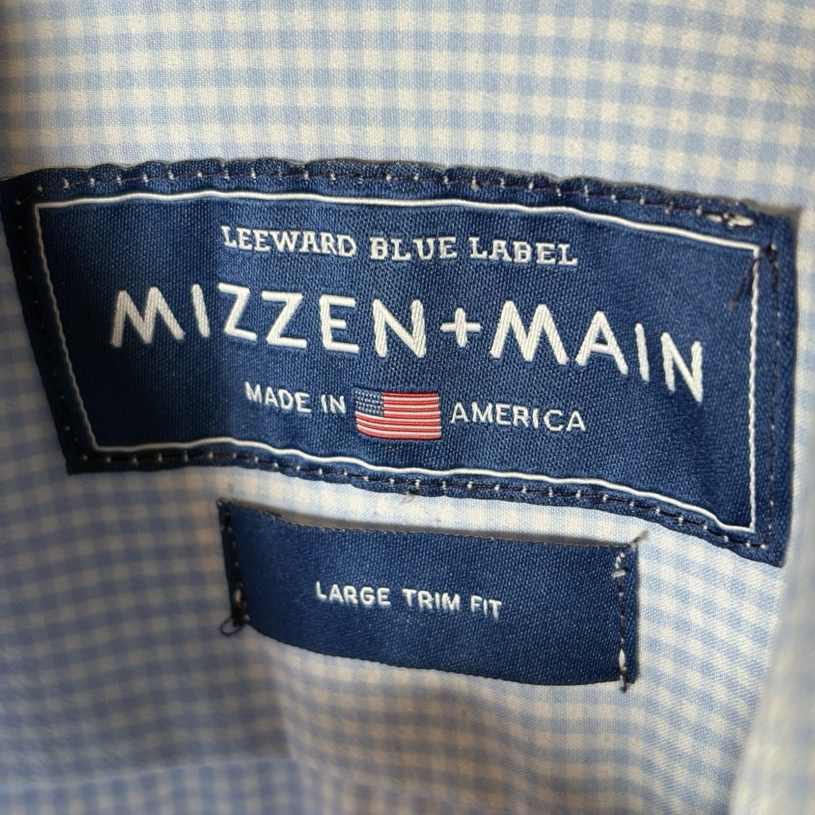 Mizzen Main Blue Label Leeward Gingham Check Dress Shirt Men s Large Trim Fit