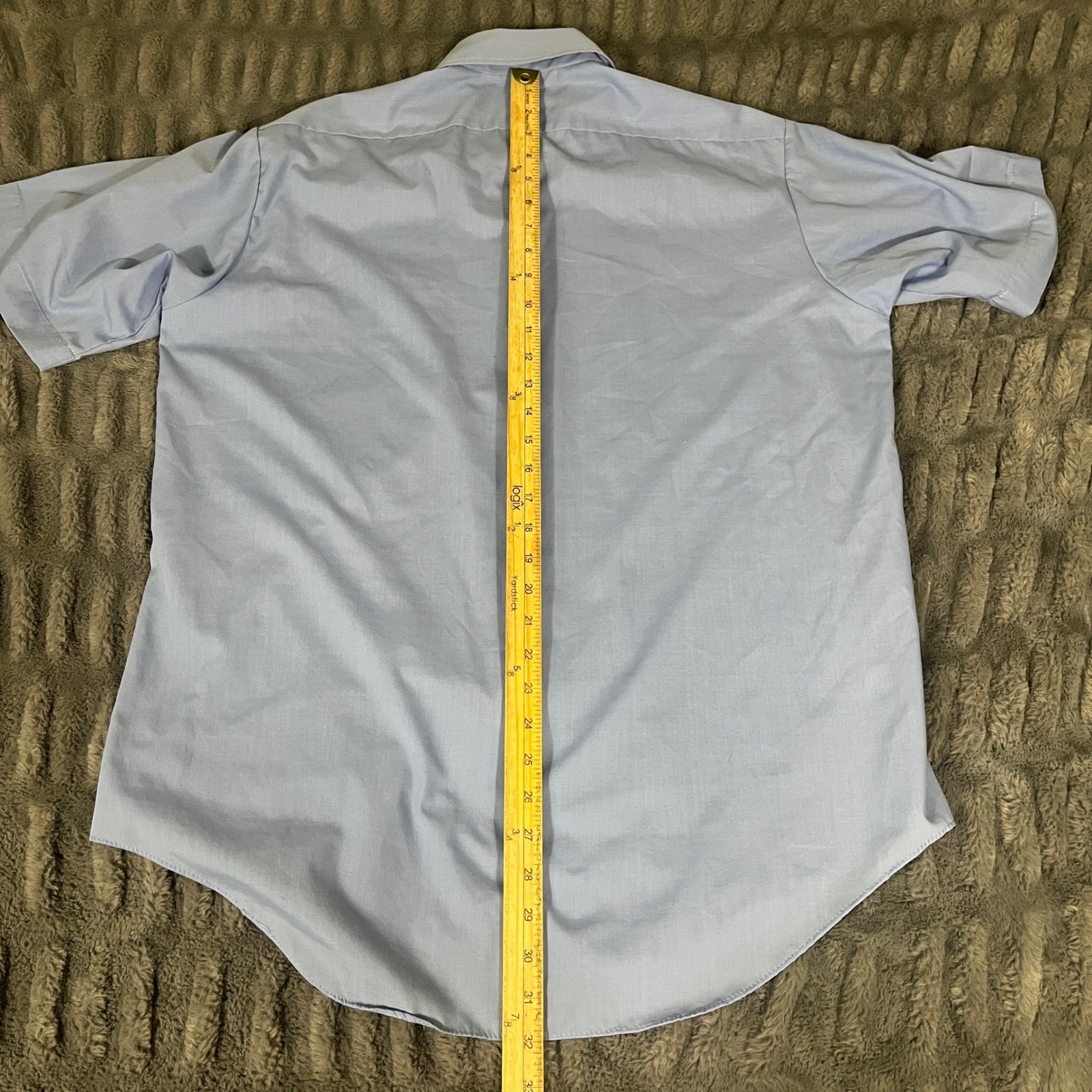 как выглядит Vintage Perma Prest Sears Mens Light Blue Short Sleeve Button Up Shirt Size 16 фото