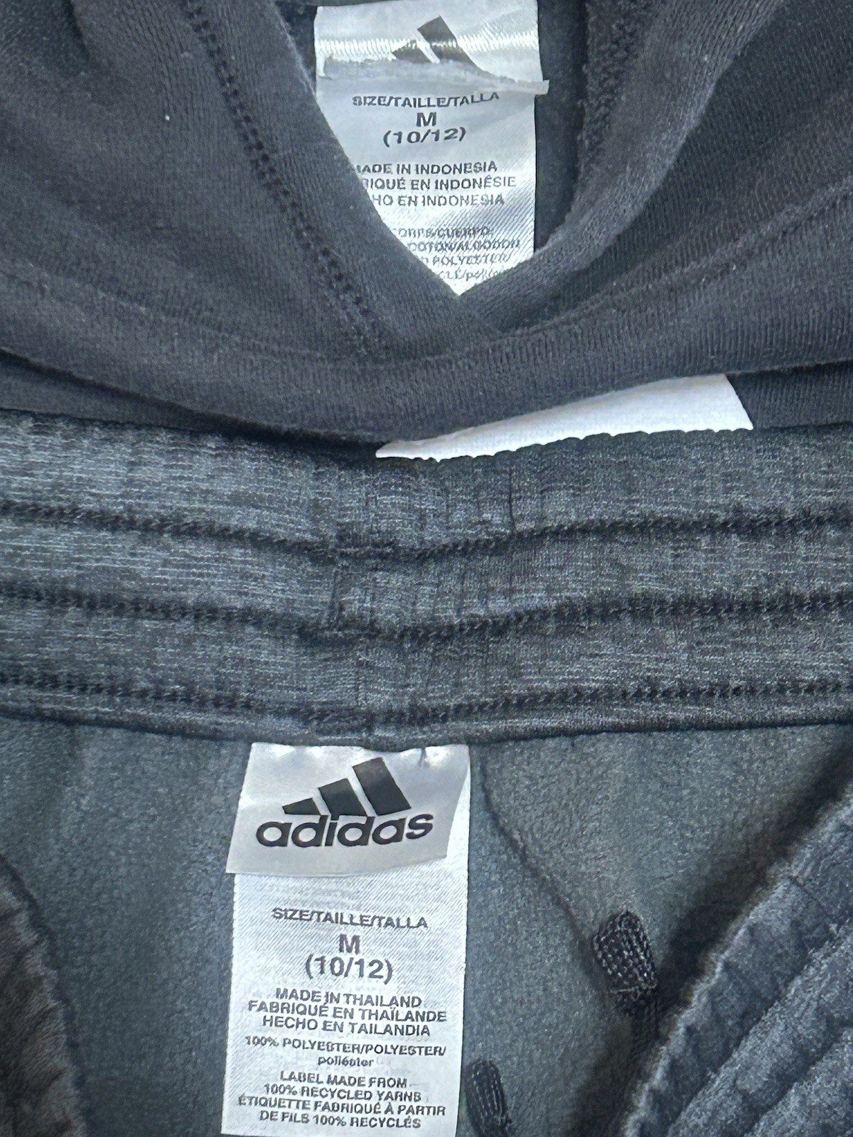 Adidas Medium Boy 10/12 Athletic Set Hoodie Pullover Joggers Black Gray Sport