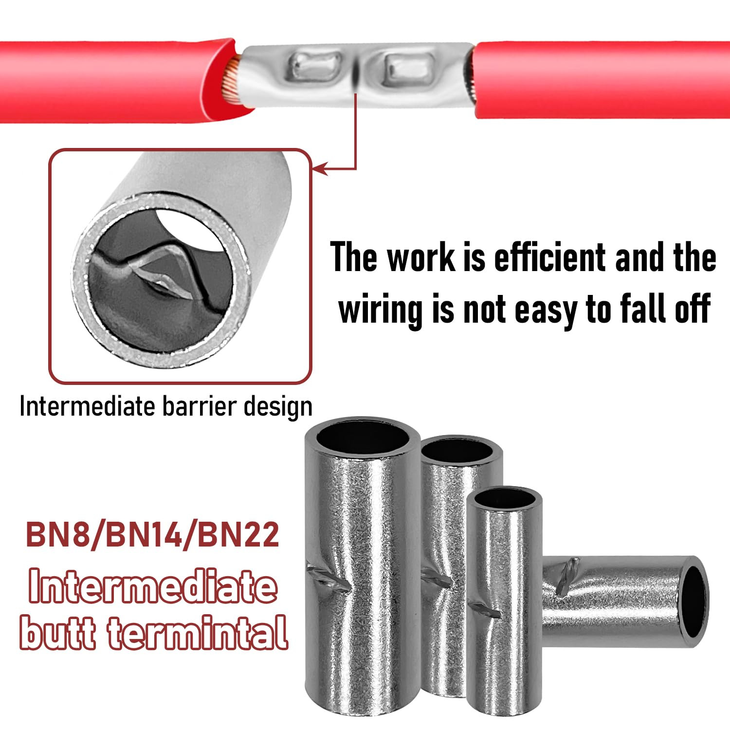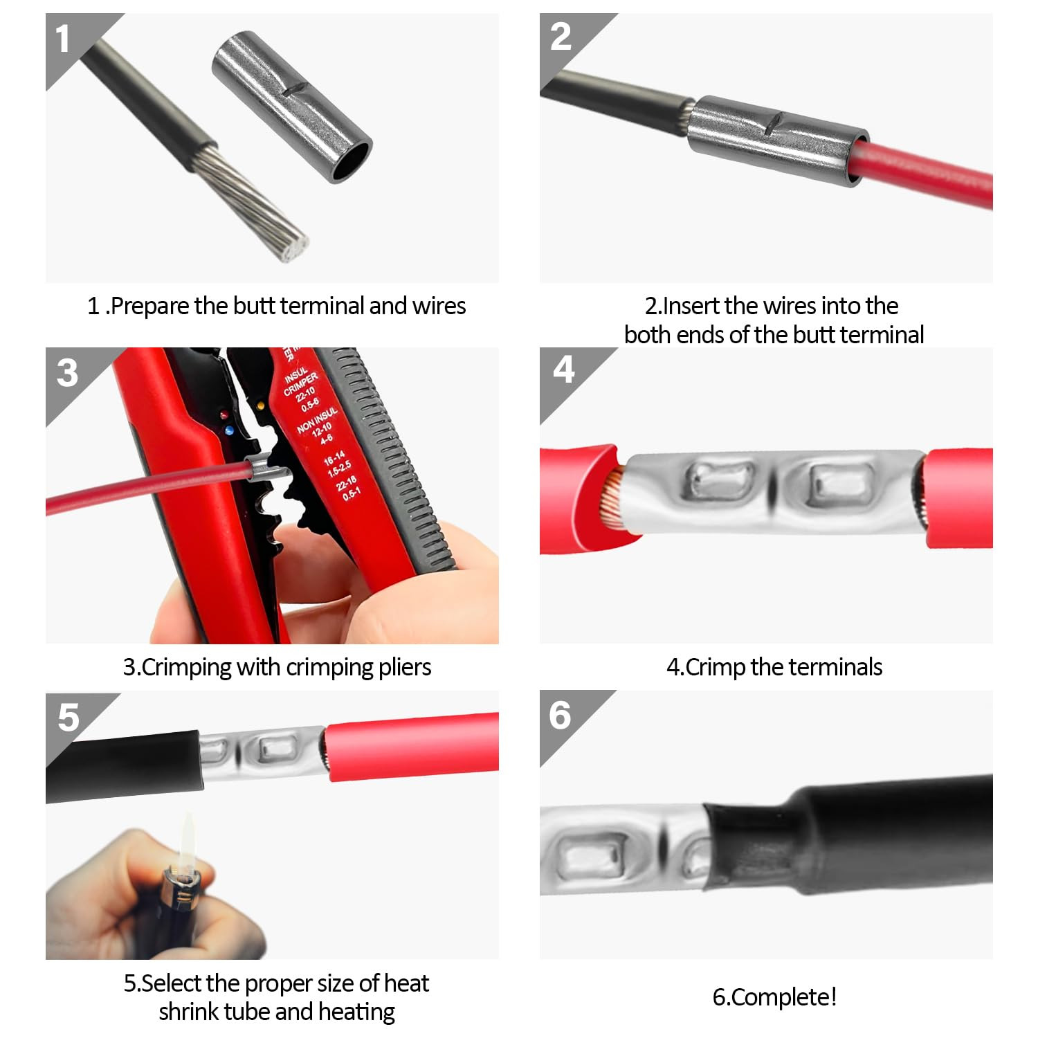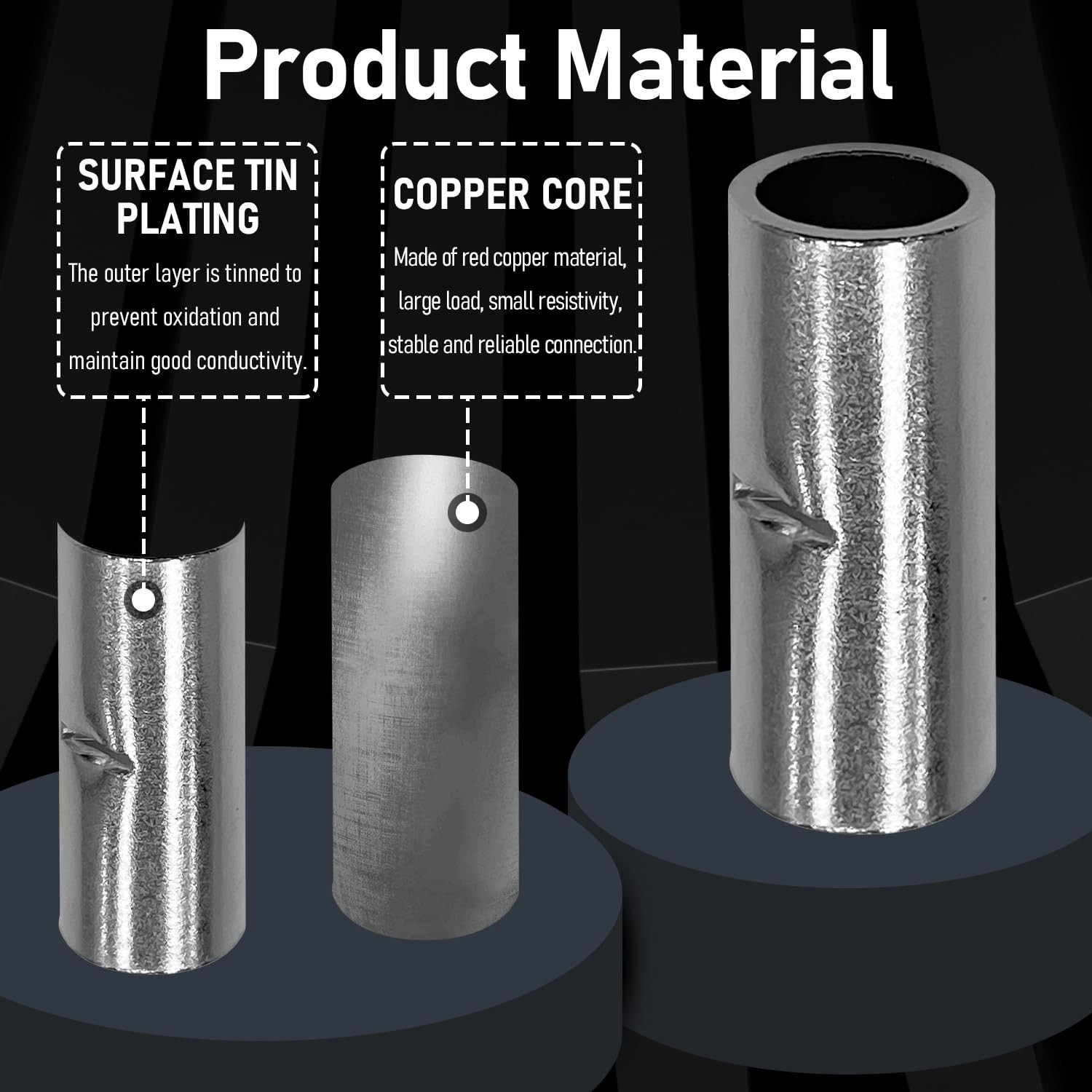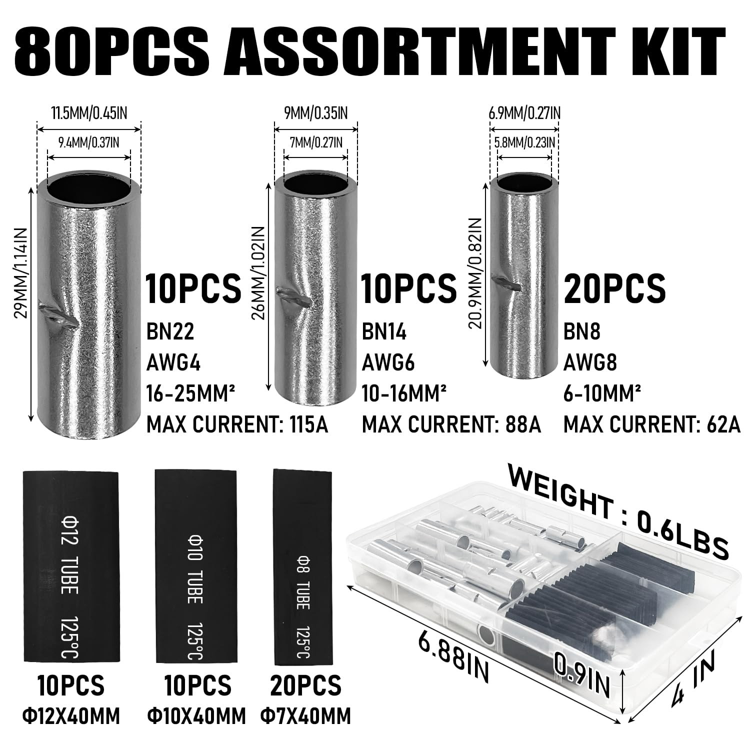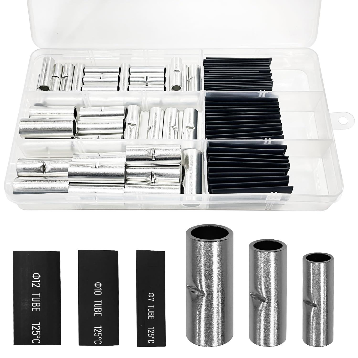 80Pcs Non Insulated Butt Connectors Kit with Heat Shrinkable Tube, 4/6/8AWG Stra